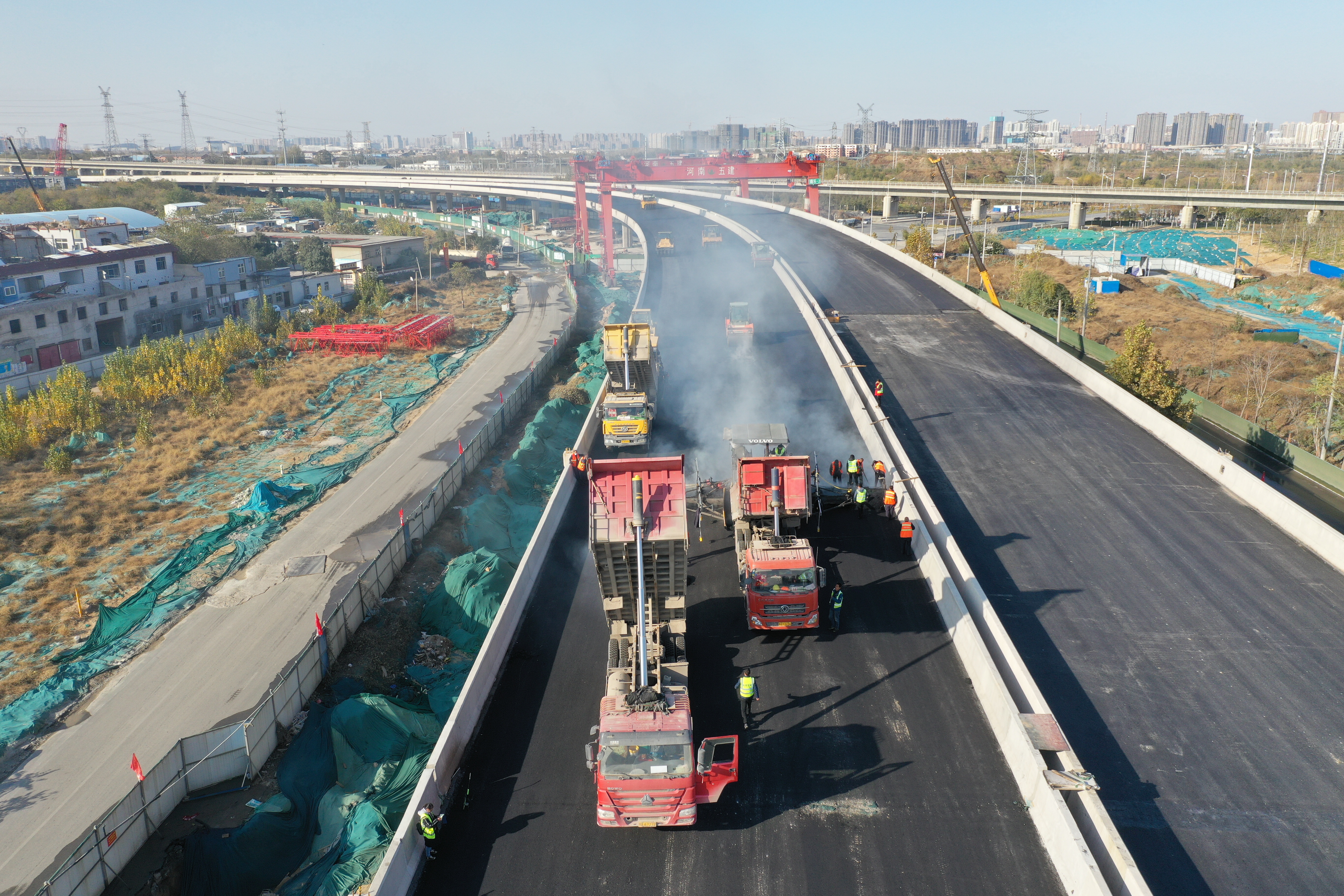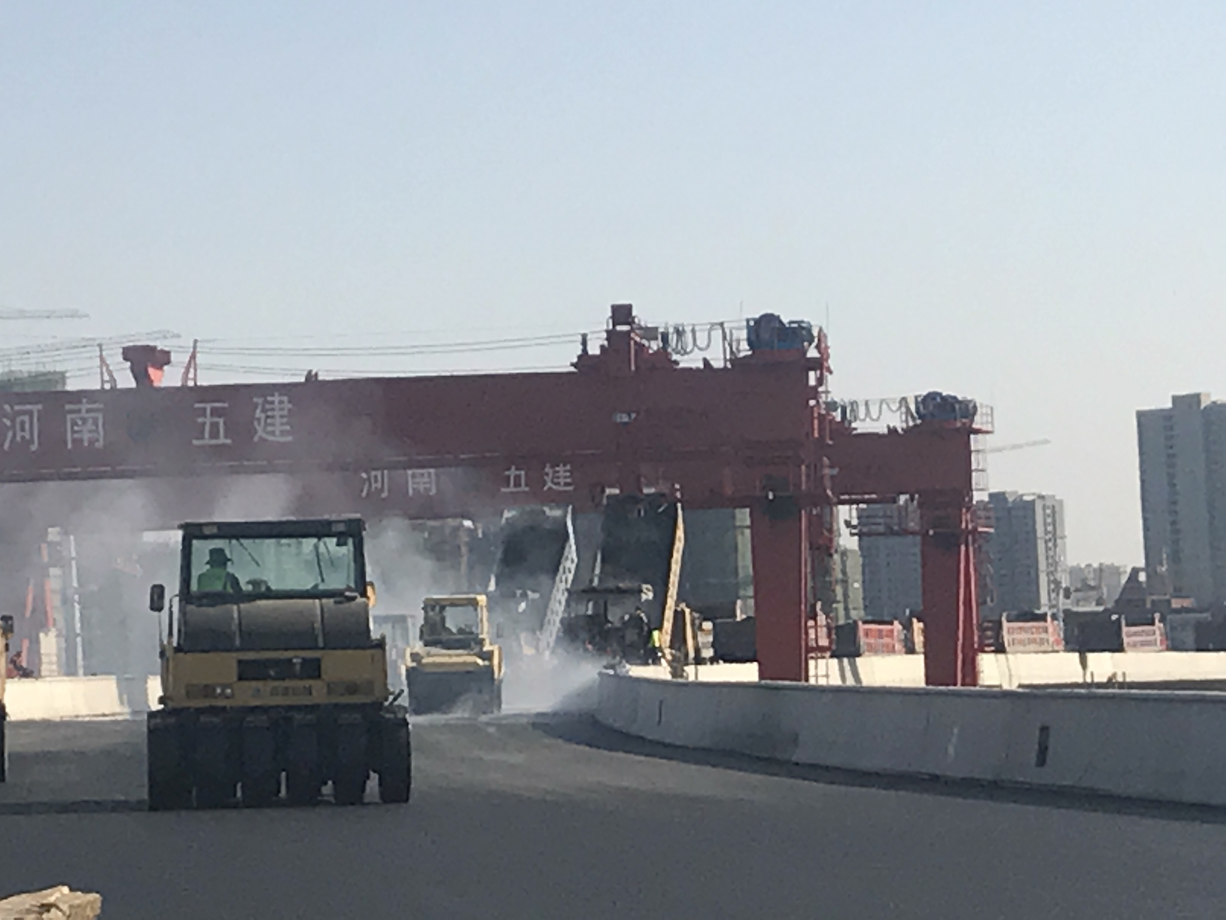 据姬志洋介绍,河南五建南四环项目标段西起南四环028桥,东至南四环嵩山路,全长约7公里,目前均处于沥青铺装阶段,"沥青铺装工作完成后,下一步将进入路灯、照明、标识标线、伸缩缝等桥面系的施工,整个标段预计于12月31日实现高架主线贯通。"