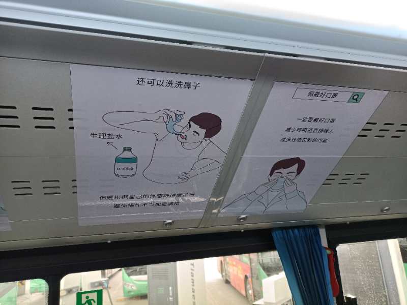 走进车厢,大家会看到萌萌的“飞絮君”可爱的说道:“当我飘入眼睛,不要用手揉,这样会擦伤眼结膜;如果有过敏性鼻炎症状,除了口服抗过敏药物,还要用0.9%浓度的生理盐水冲洗鼻腔;严禁乱扔烟头,我们一旦焚身,极有可能迅速蔓延殃及周遭,导致火灾事故的发生……”
