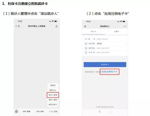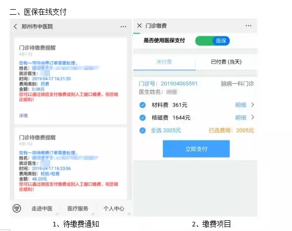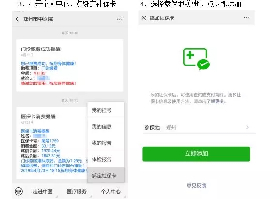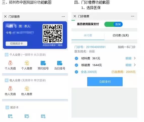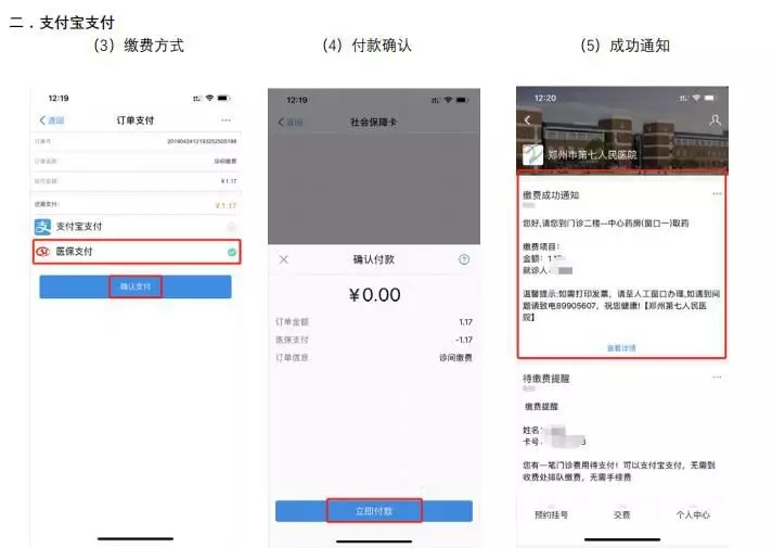 郑州市参保人使用社会保障卡在郑州市中医院、郑州市第七人民医院的窗口或自助机完成社保卡建档操作后,即可使用社保卡享受挂号、就诊、结算、查询等全流程就医服务,实现诊疗信息、结算信息实时共享,方便参保人员就医看病。同时配合电子社保卡医保在线支付的应用,患者通过支付宝或微信绑定实体社保卡完成线上建档后,即可使用医保个人账户结算诊疗期间产生的费用,免去了就医过程中各种排队缴费的麻烦,极大地提高了就医效率。