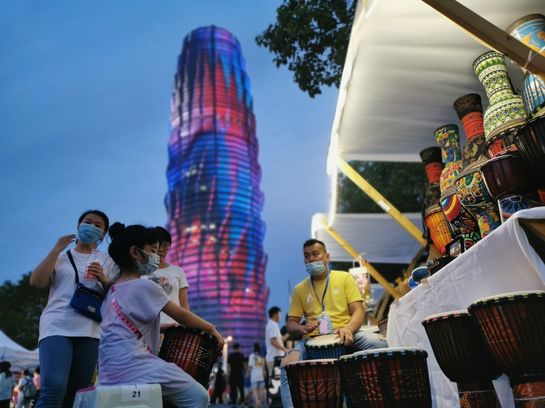 华灯初上,郑州地标大玉米脚下,伴着如意湖畔的凉爽清风,河南艺术中心广场上的“郑风艺术市集”人头攒动。