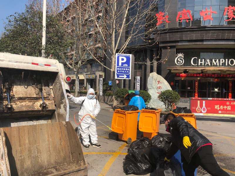管城区城管局组织各办事处在居民小区设置“废弃口罩专用”收集容器和“居家隔离人员专用”垃圾收集容器,由辖区办事处安排专职清运人员及专用车辆定时将垃圾转运至辖区集中收集点。同时,配置特殊垃圾袋,垃圾收运时确保垃圾袋紧扎口、无渗漏,收集前、后各消杀1次。