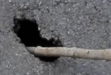6日4日早上,在郑州市纬五路与丰产路交叉口附近,马路中间突然出现了一个看不到底的“深洞”,几名热心人找来木棍向下面探了探,发现深度有一米多,且洞口周边的柏油路面下方,泥土已被冲空,一旦重车轧上去,很可能会造成大面积塌陷。