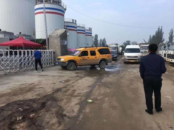 10月23日上午,不少车辆被堵在洁净公司门口。