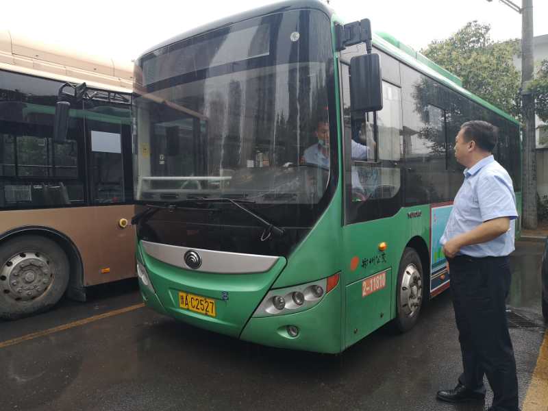 6月16日清晨,郑州公交二公司各级管理人员、车长提前到岗,冒雨检查车辆、查看线路,为线路运营做好准备。