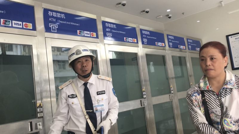 巡防队员跟随求助人孙女士来到疑似发生故障的那台ATM机旁,一名市民出来说机器出故障无法正常取款,还得再换一台机器办理业务。因中秋节银行人员均已放假,无奈巡防队员宋原伟只好用自己手机帮忙拨打客户服务电话咨询,可是一直很难打通。