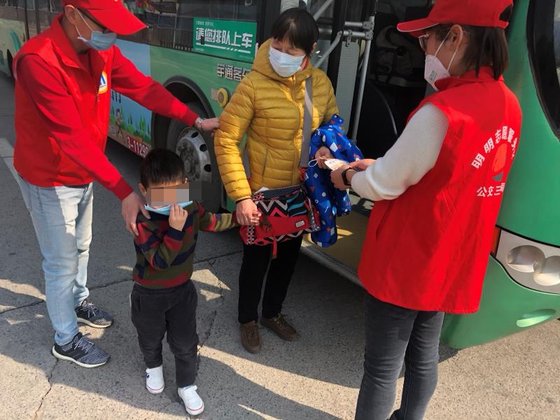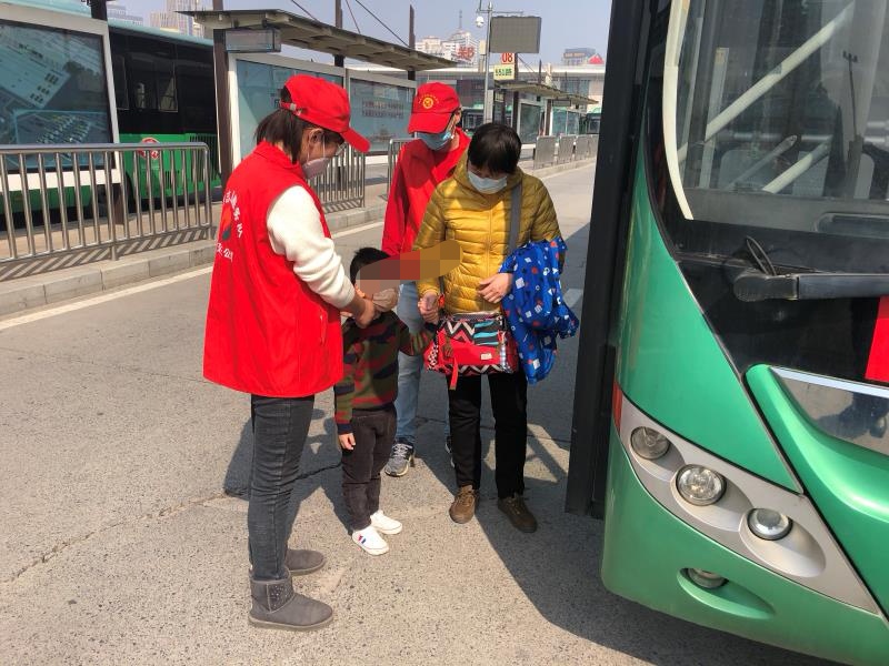 很快,孩子顺利上车。