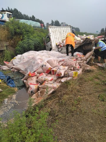 6月16日7时许,一辆运载花生的轻型货车行驶到京港澳高速705公里东半幅时,因雨天路滑,货车司机王先生遇到突发情况时,处置不当,导致货车失控碰撞高速公路护栏后冲下高速公路,造成货物散落、车辆和高速公路护栏受损的单方事故,所幸运无人员受伤。
