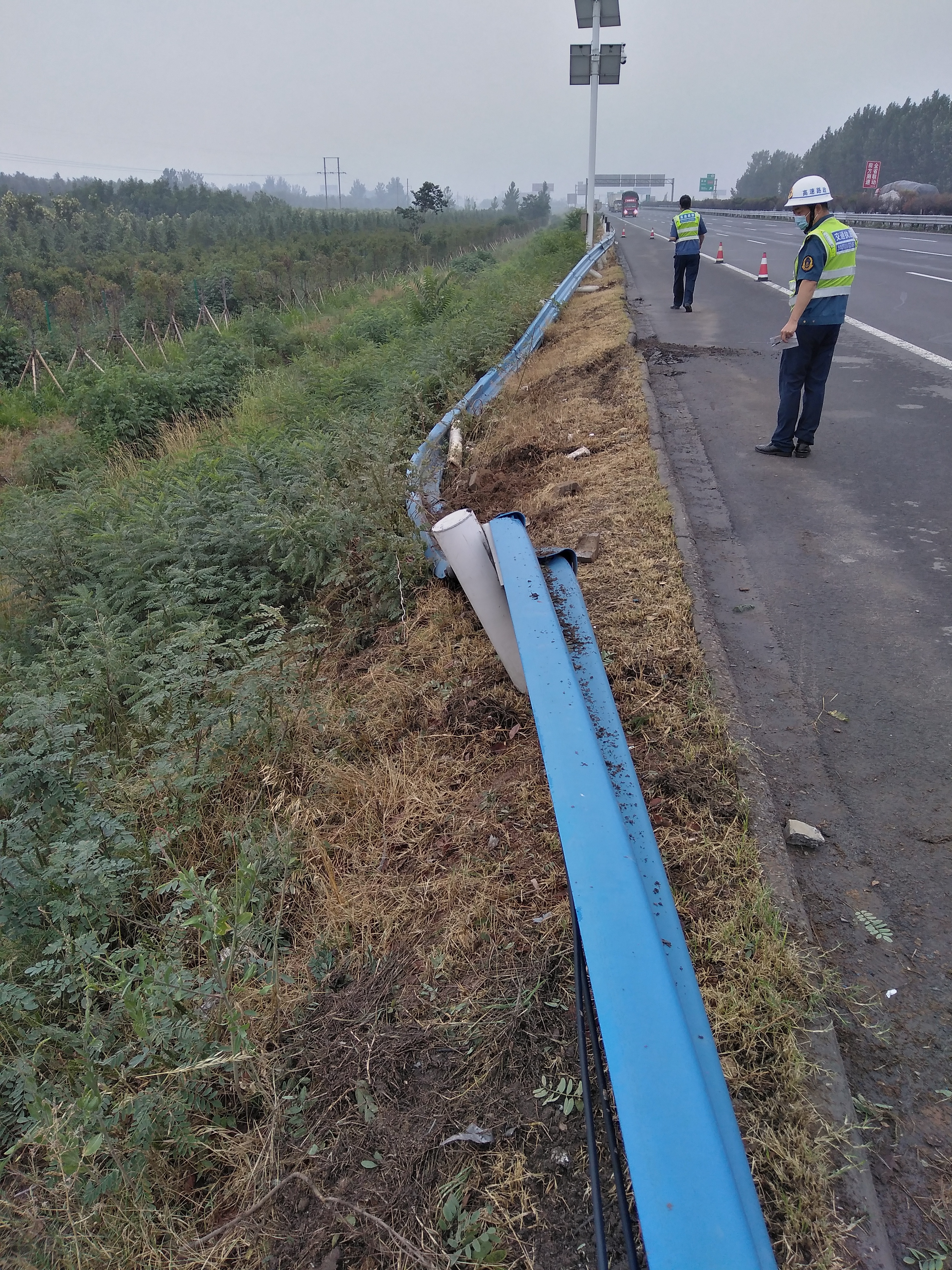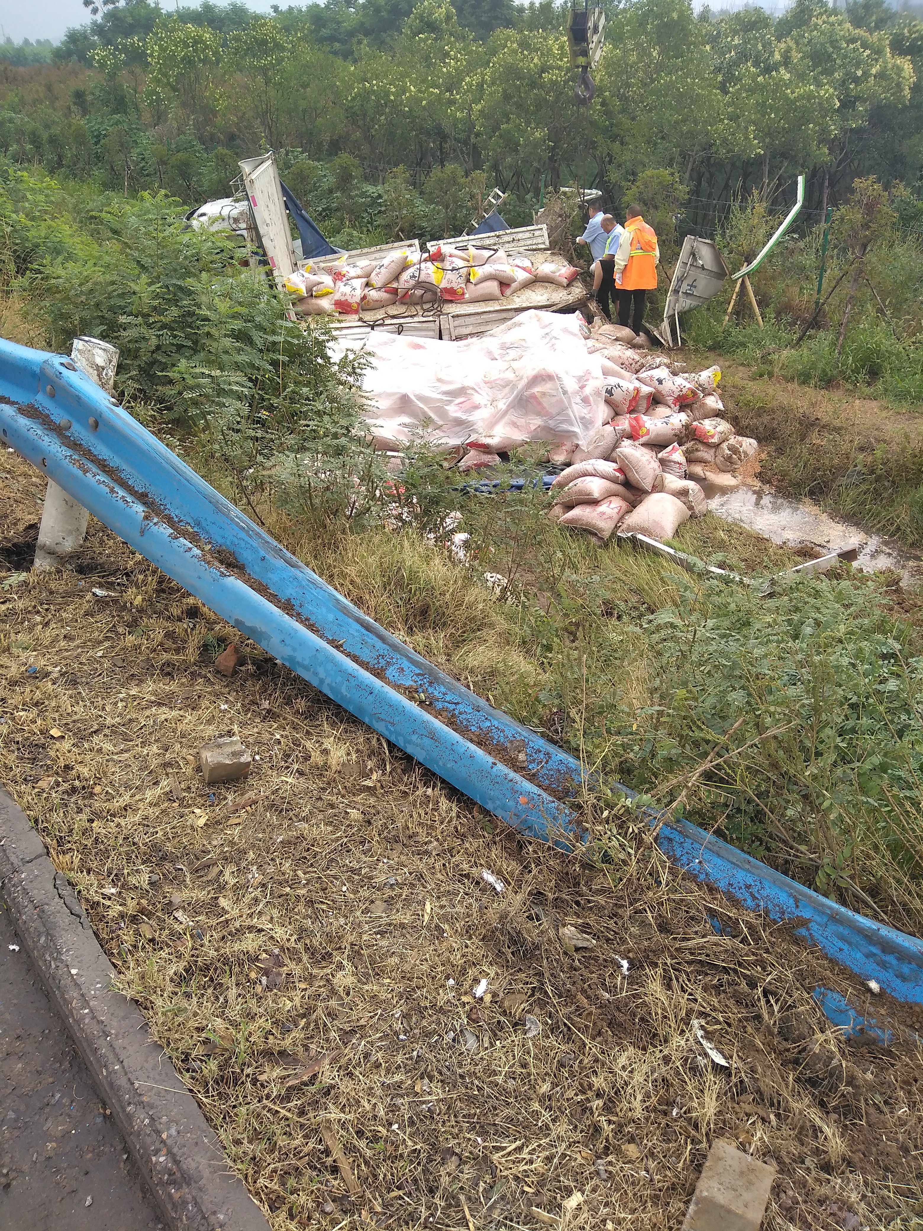 雨天路滑一货车冲下高速,河南高速交警发布紧急提醒