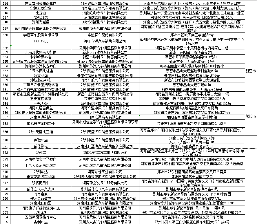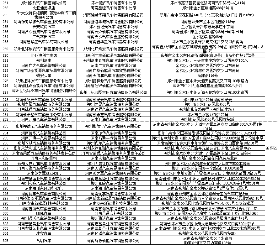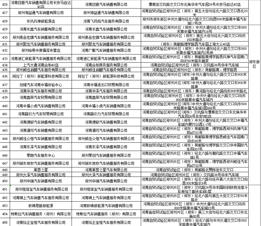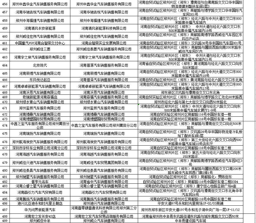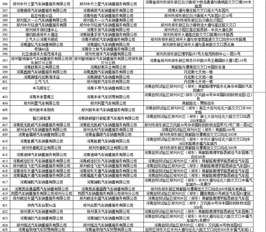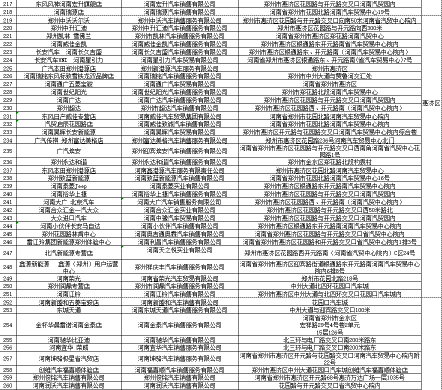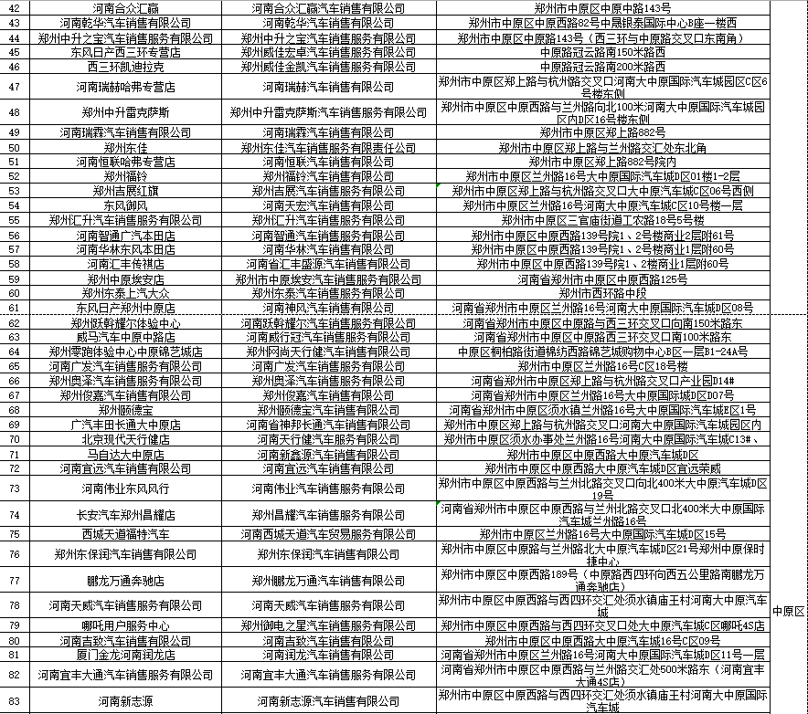 2022年郑州市金秋汽车消费券发放活动参加企业名单