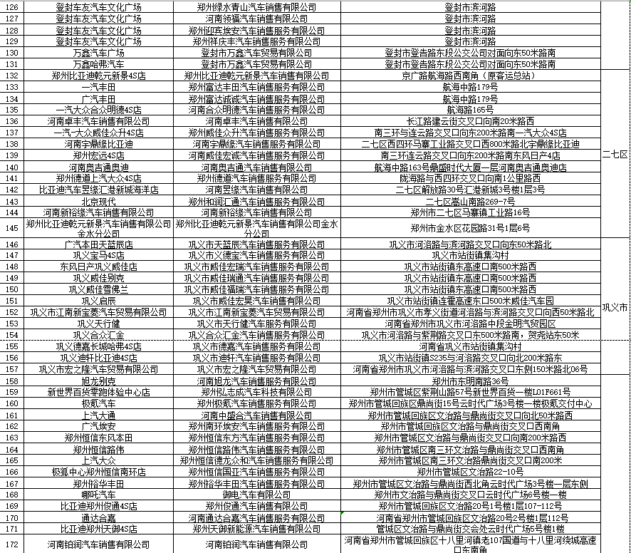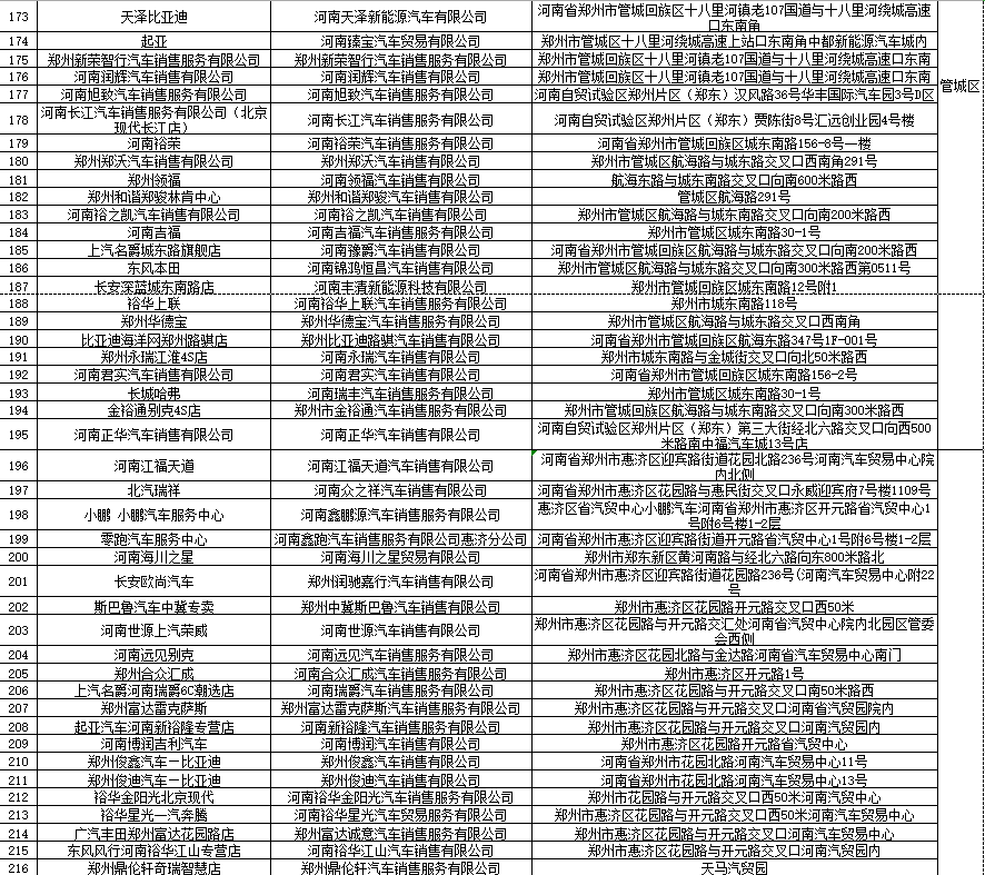 3.各区县(市)指定的汽车销售企业可在下方附表中查询,也可在郑好办APP首页“金秋汽车消费券”轮播图中点击进行搜索查询。