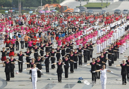 2014年7月26日,驻马店最高气温34℃,大部分市民都在想着怎么避暑。可是,有一群人,却坚持在炎炎烈日下!她们就是驻马店市两千名广场舞爱好者,当日齐聚驻马店天中广场,冒着34℃的高温,齐跳佳木斯操,为即将到来的“全民健身日”表演提前操练。对此,网友深表:大妈,你们赢了……