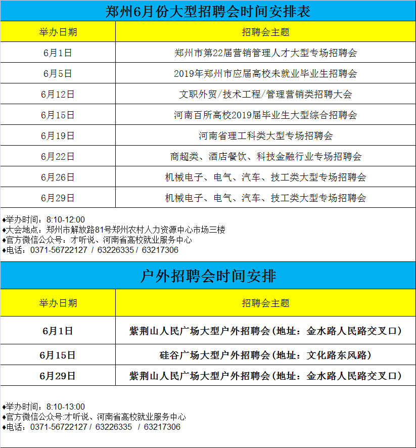特别提醒,郑州市农村人力资源资源中心市场招聘会在每周三周六上午09:00至12:00,上述招聘活动,求职者均免费入场求职!