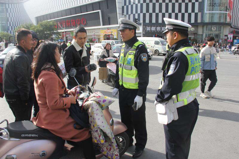 郑州交警三大队开展非机动车及行人交通违法整治行动