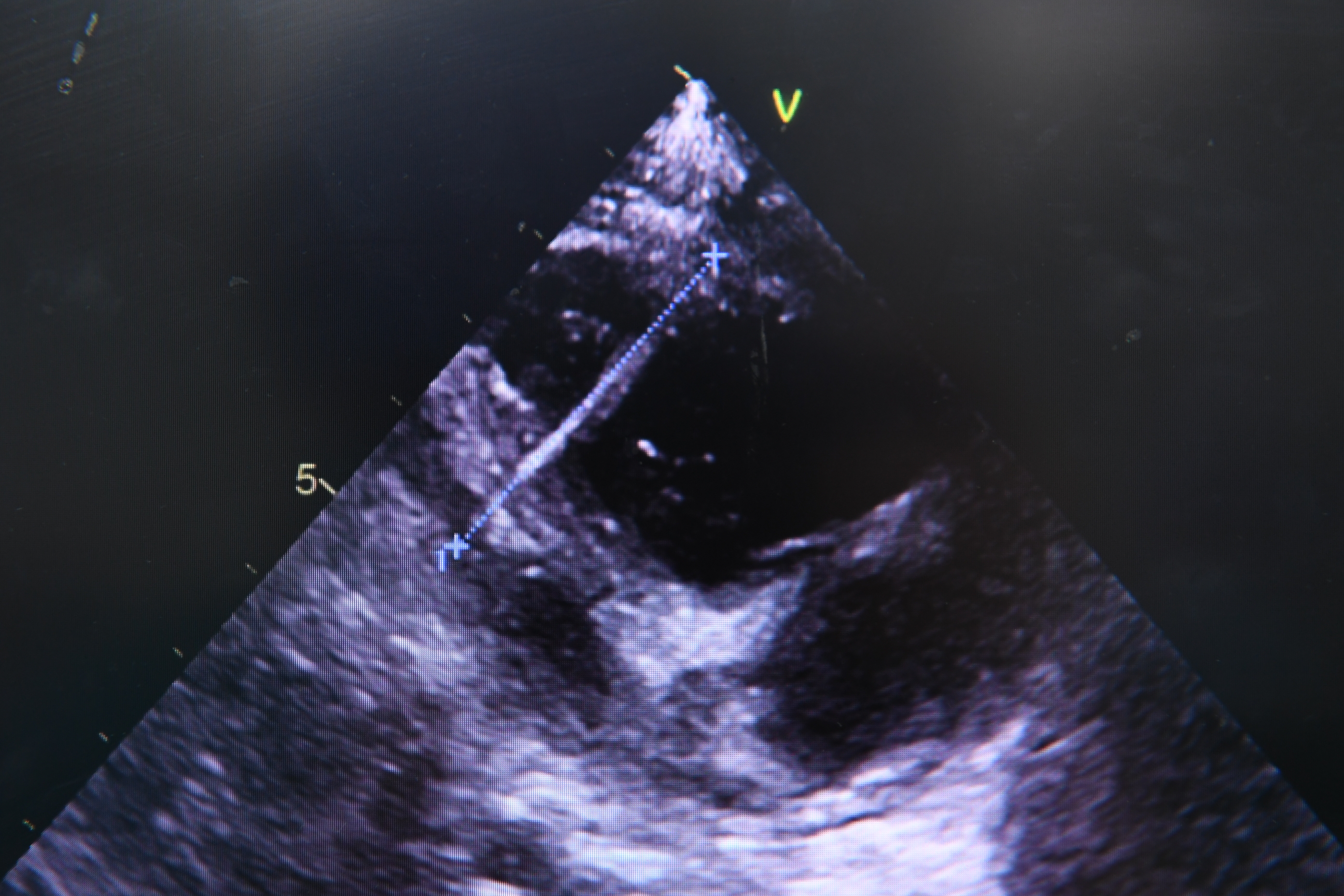 由于心脏有节律的收缩舒张跳动,钢针已经被带入心脏内部,在扎穿室间隔后,针体几乎完全扎入了心腔内,只在心脏表面留下个不足1mm的小尾巴。