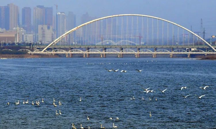 这是2月20日在河南省三门峡天鹅湖国家城市湿地公园拍摄的天鹅。新华社记者 李嘉南 摄