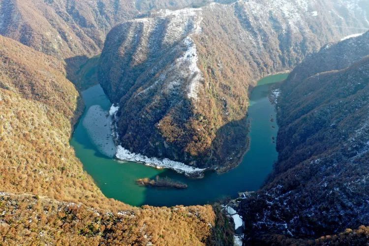这是2月1日无人机拍摄的河南省卢氏县双龙湾风景区的景观。新华社记者 李嘉南 摄