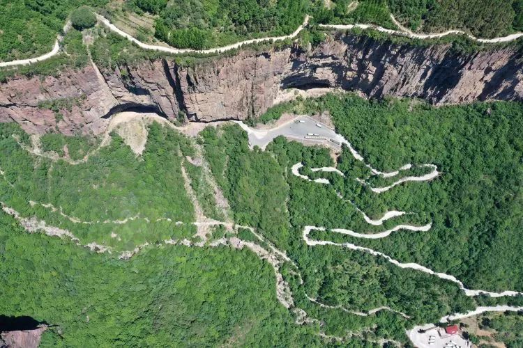 这是5月22日无人机拍摄的河南省辉县市郭亮村的绝壁峡谷。新华社记者 冯大鹏 摄