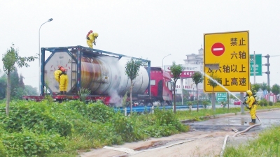 本报焦作讯 8月3日下午2时05分,一辆拉有27吨氟化氢的江西籍重型罐式危险品运输车,由西向东行至孟州市常伏线238省道高速桥东50米处时,因防爆阀门损坏,导致大量氟化氢泄漏,情况危急,驾驶员立即向119和交警部门求助。