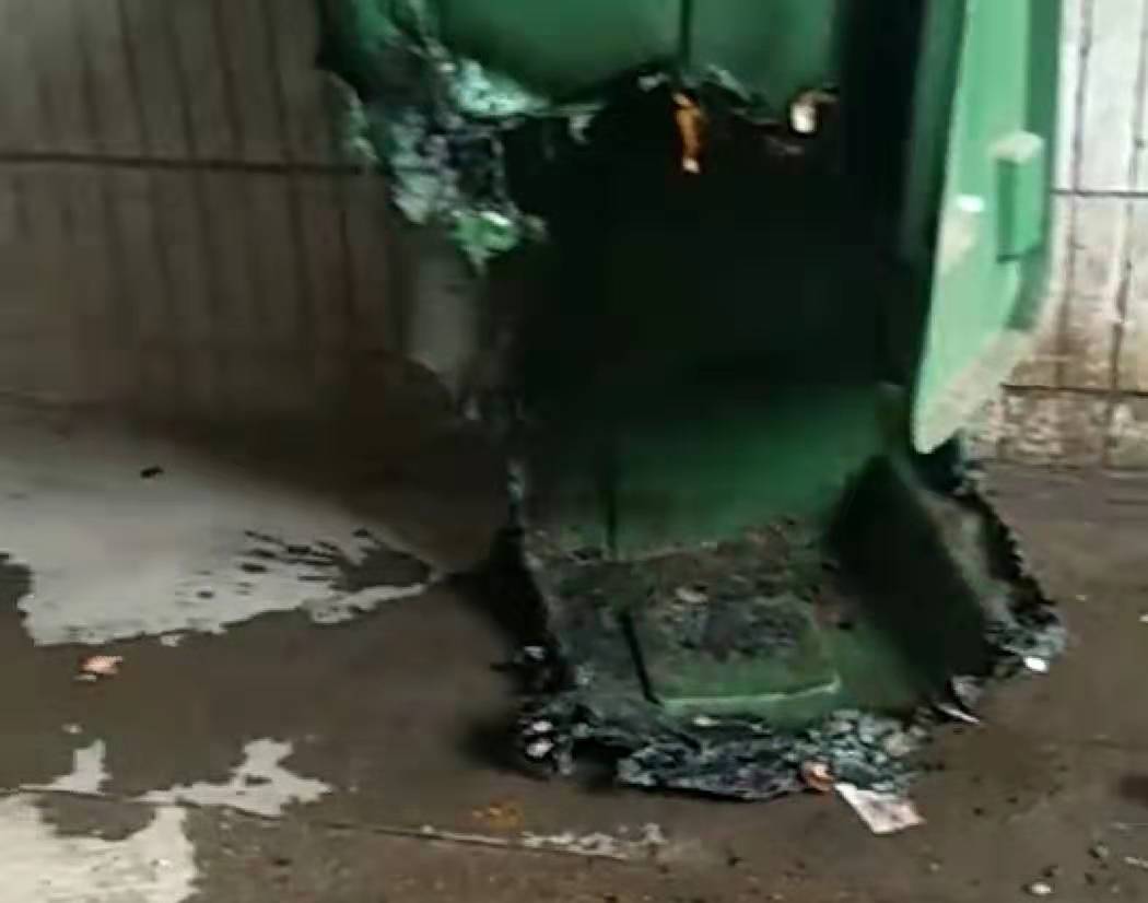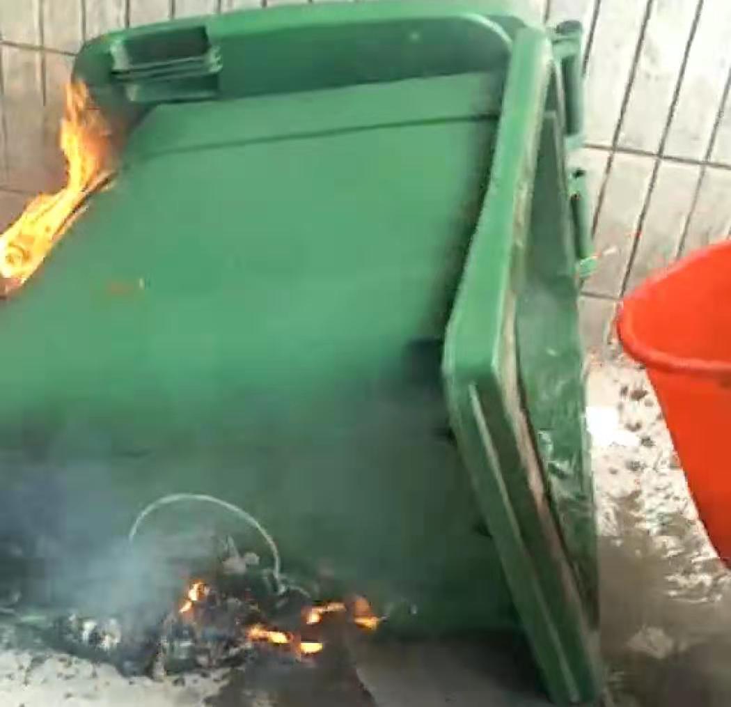 未熄灭烟头丢进小区垃圾桶 结果垃圾桶着火了
