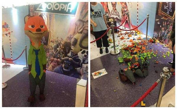 最近一则轰动全国的熊孩子新闻就是,北京“乐高尼克狐”展出一小时后被熊孩子推倒。
