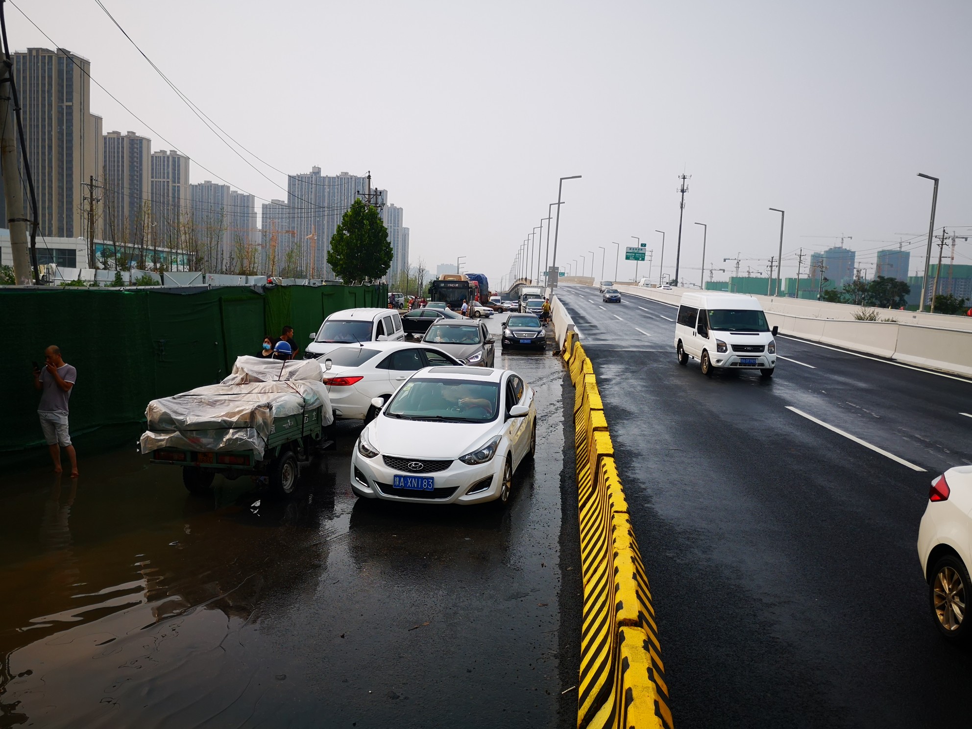 郑州西四环辅路积水断路 车辆纷纷掉头