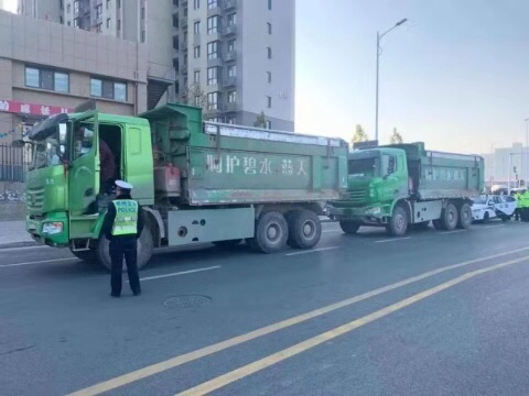 12月9日早上7点,郑州交警二大队保通中队民警徐杰带领辅警韩龙飞在高新区须水东路和莲花街正常执勤。7时30分许,号牌为豫A0093R、豫A8581A的两辆渣土车缓缓向执勤点驶来。