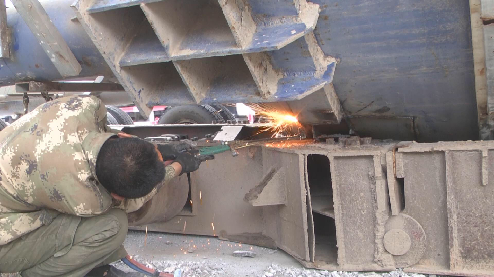大货车拉着一个“巨无霸”,从人行天桥下经过被卡死