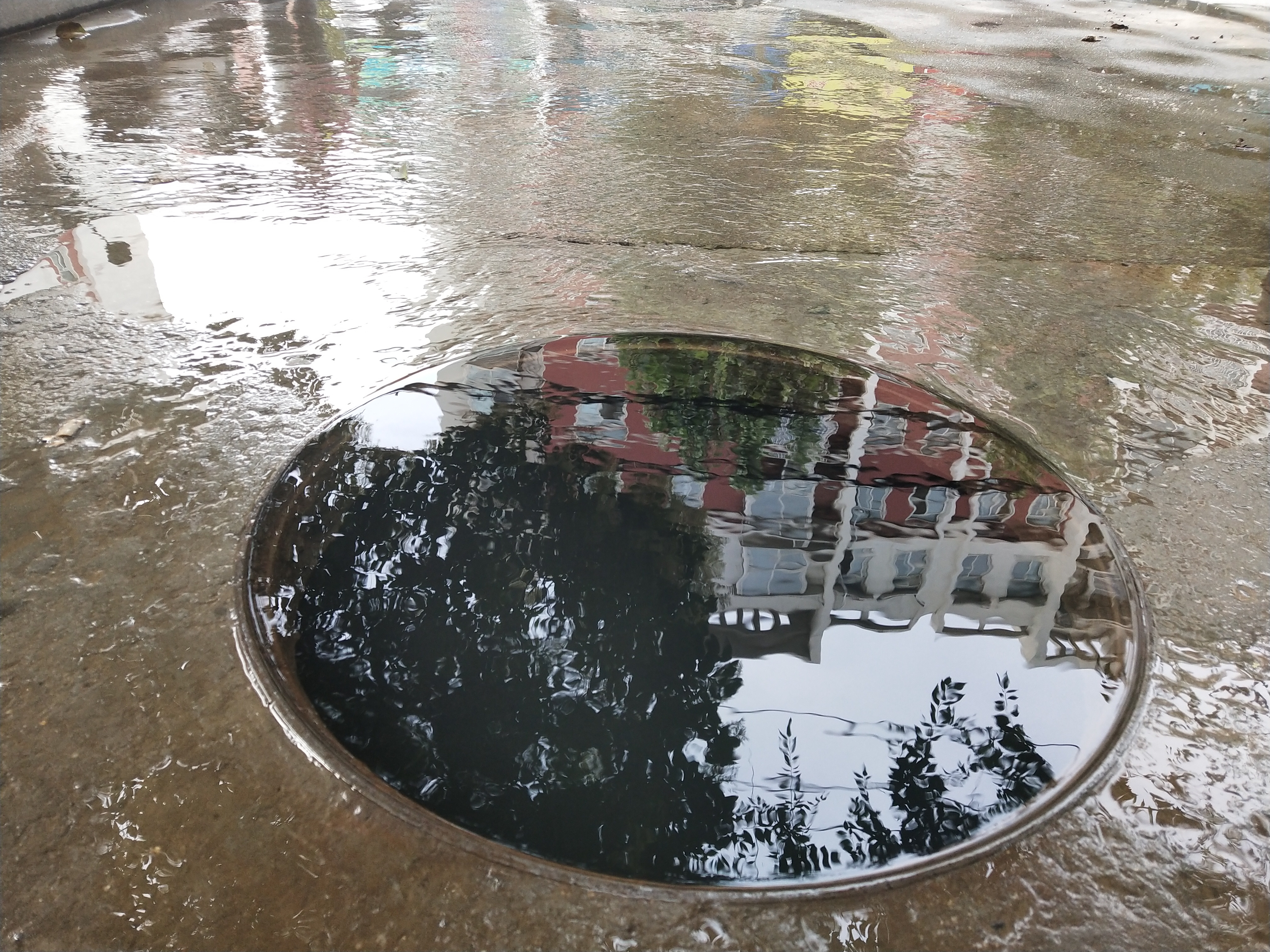 见这口窨井“大张口”,井内还有较深的水,为避免过往行人经过时发生意外,巡防队员找来反光锥挡在井旁,以提醒大家绕行避让。