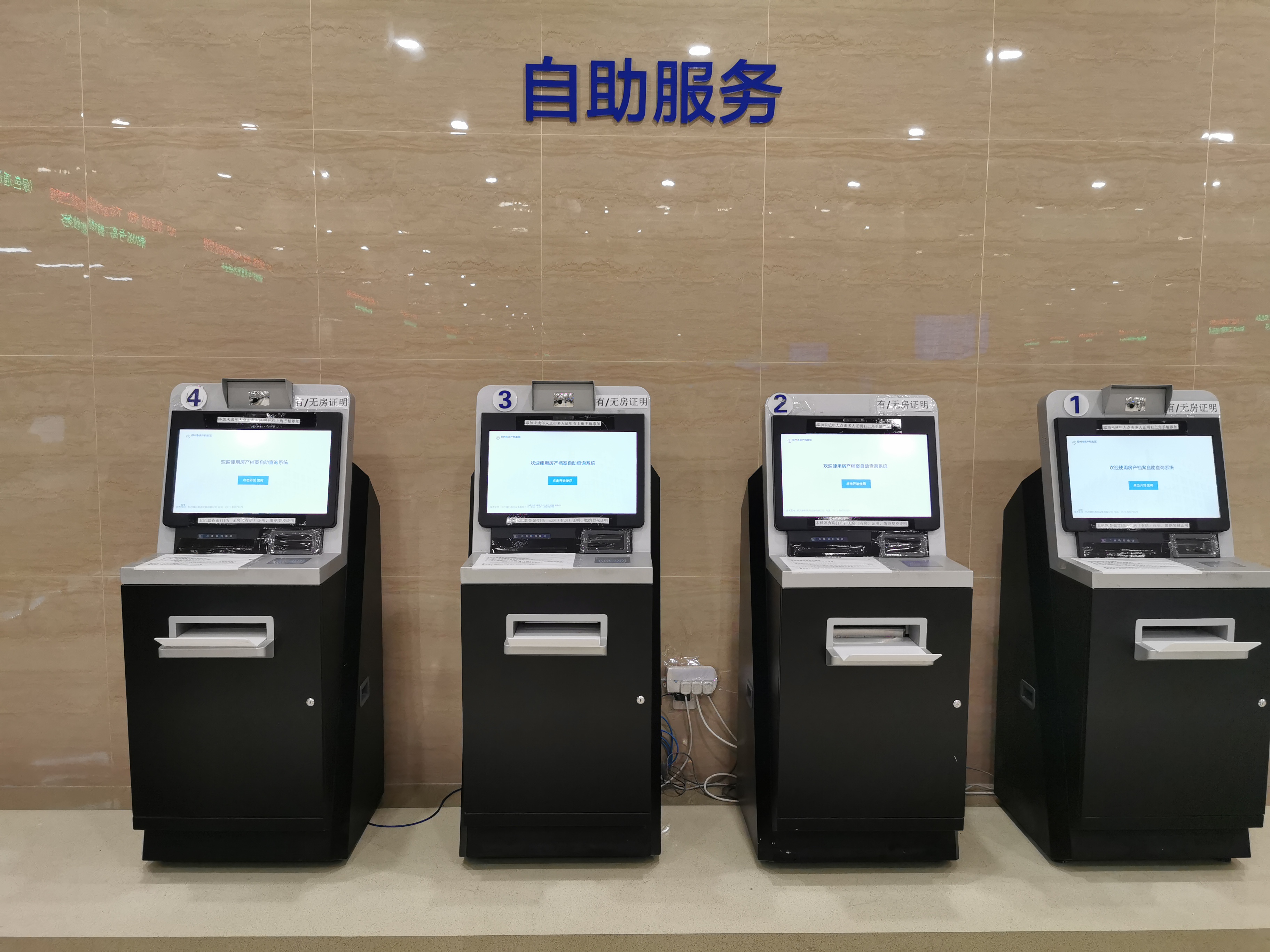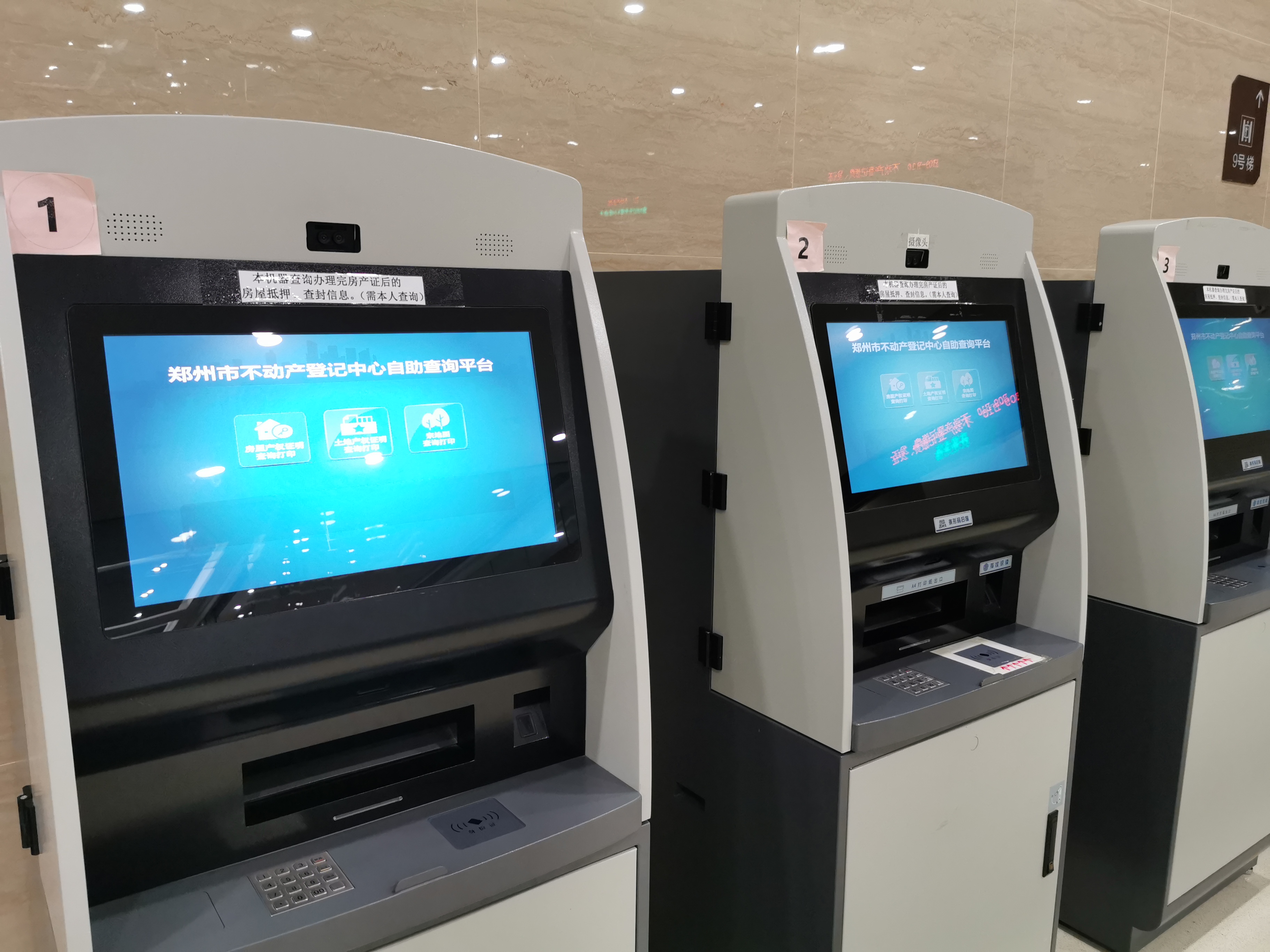 8月26日临近中午,记者驱车赶至郑州市中原西路市民服务中心了解情况。该中心一楼大厅处,共设置了8台个人房产权属查询自助服务柜机。左侧一组4台机器分别贴着小字条显示,“本机查询打印,无房(有房)证明、缴纳契税证明。”