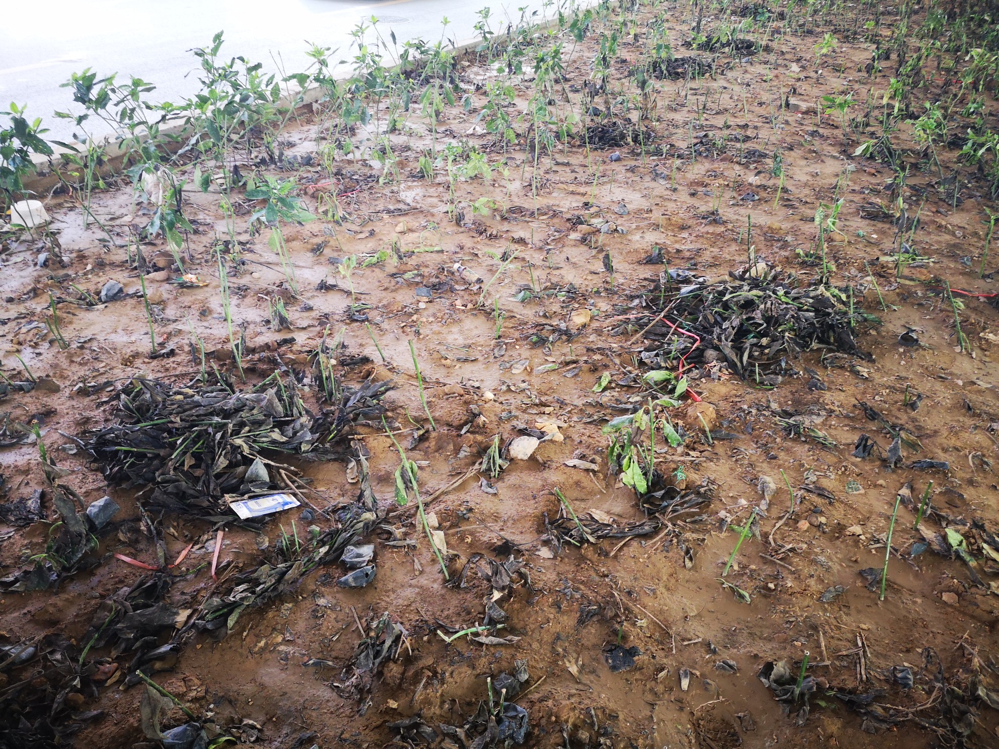 对于绿植大面积枯死的说法,上述男子解释,不是死了,只是一小部分死了,对于枯死的,会重新处理掉,进行补栽。因叶片没有水分,导致部分叶子干了,但根系没有烂,是健康的,部分已经开始发新芽了。
