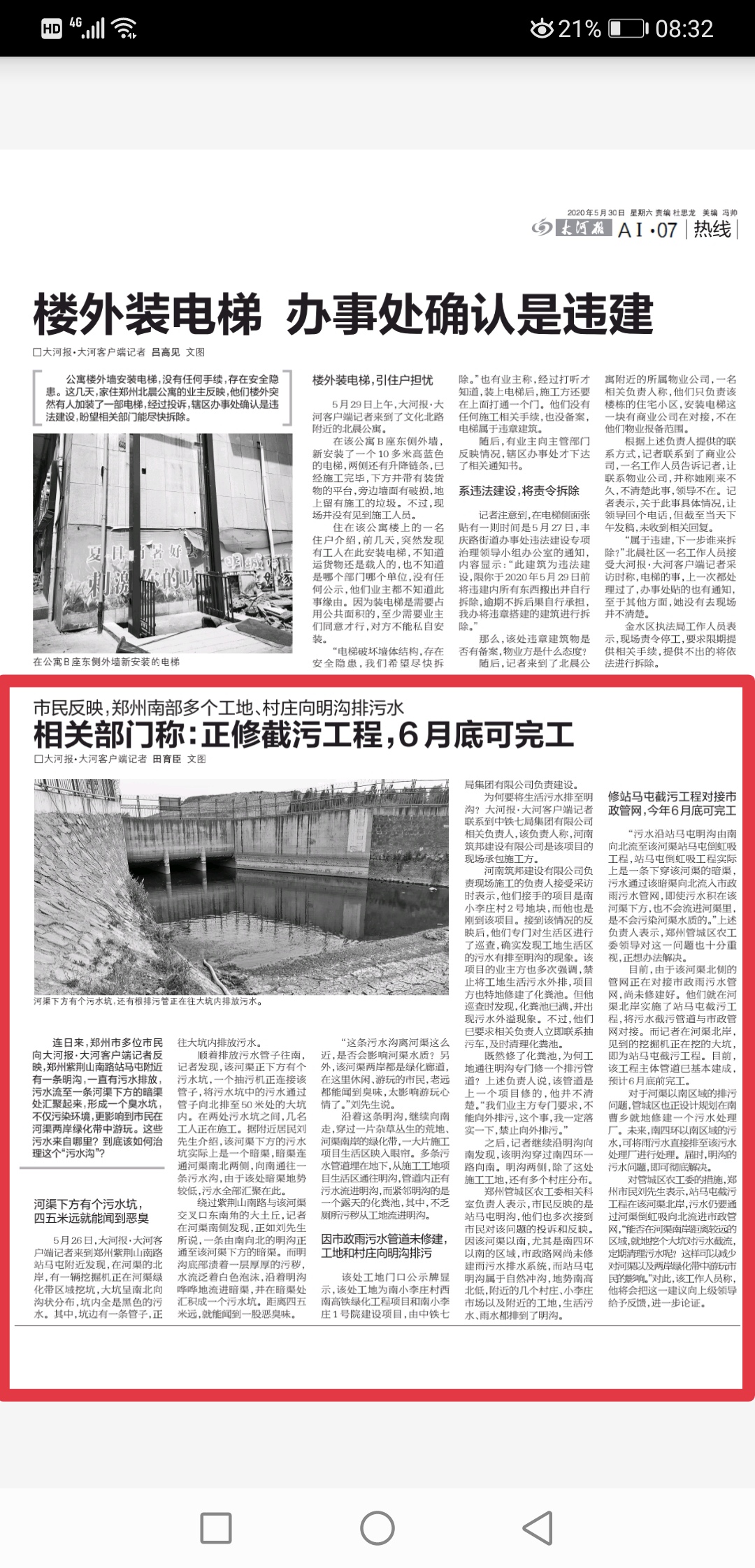 7月6日,郑州管城区农工委相关科室负责人受访时表示,该河渠以南,尤其是南四环以南的区域,市政路网尚未修建雨污水排水系统,而站马屯明沟地势南高北低,承担着夏季附近几个村庄、小李庄市场以及附近的工地的防汛、排洪功能。目前,河渠北岸的站马屯截污工程已完工,并完成了污水截污管道与市政管网的对接,污水将暂时向北流入市政管网中。同时,一个月前,大河报·大河客户端对该问题进行报道后,他们也主动联系了附近的村庄、市场,进行了截污处理,生活污水已严禁排到明沟中。而对于该工地排污水的情况,他们也会到现场落实、处理,具体情况会向记者回复。