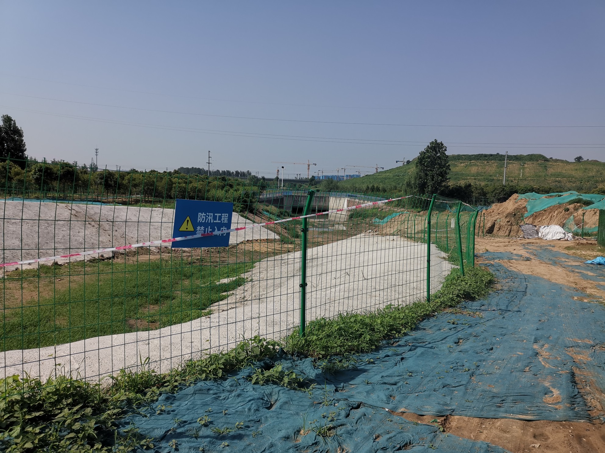 7月6日,大河报·大河客户端记者在郑州紫荆山南路与该河渠交叉口东北角发现,该处入口处竖了一块“站马屯明渠值守点”的牌子,沿着牌子指示方向往里走,是一条深四五米的明沟。一个月前,该处还是一个小土沟。如今,沟不仅被挖深,沟底与沟的两侧也被水泥硬化。该明沟一直向南方向延伸到上述河渠下方的暗渠处,向北则经过两个石砌管道,一直通向远方。水泥硬化的明沟两侧,已被铁丝网围了起来,上面挂着“防汛工程,禁止入内”的警示牌。