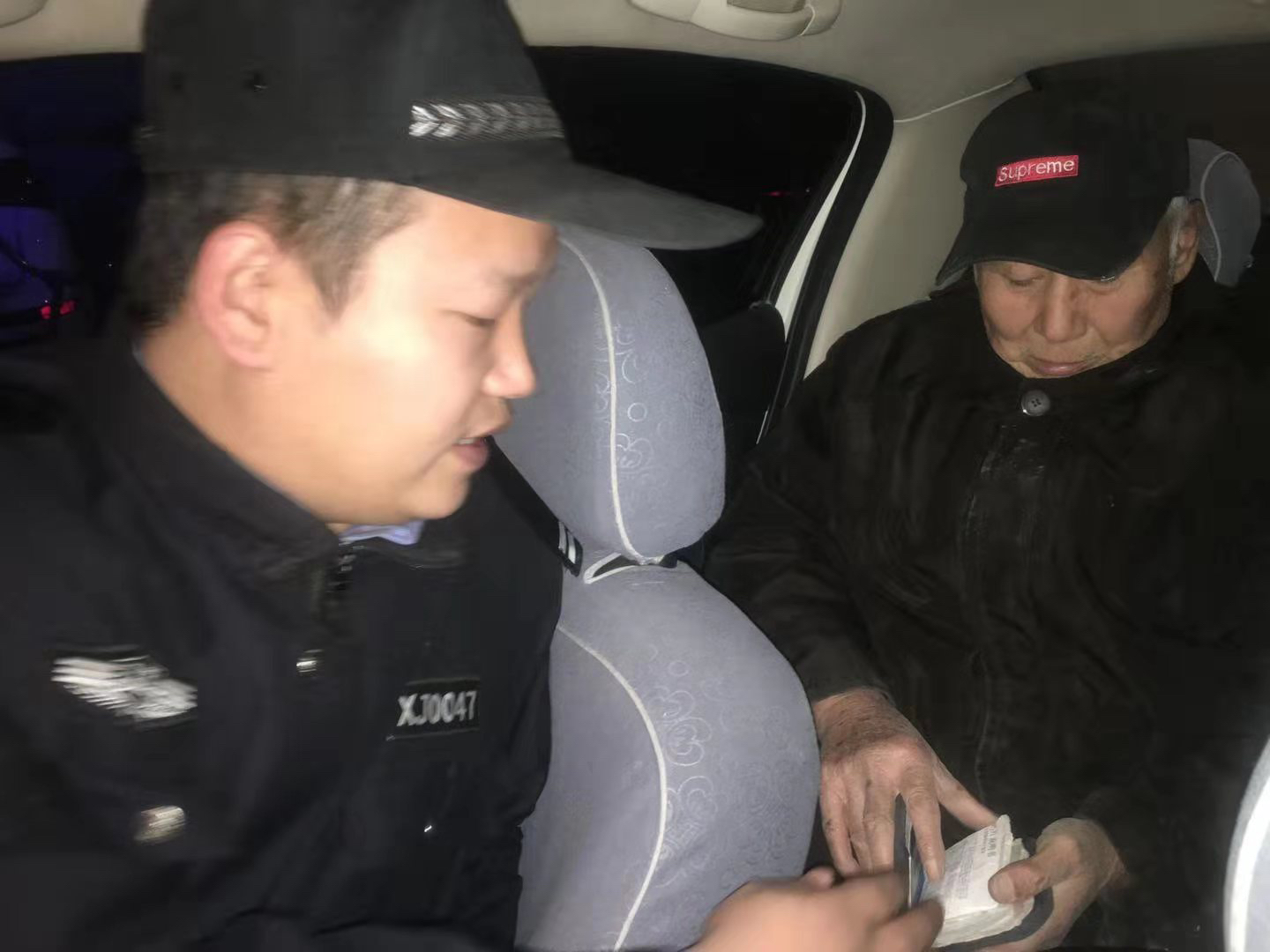 11月26日凌晨,一迷路老人深夜推着三轮车上了高架,民警接警后与其沟通找到其随身携带的纸条,联系上家人后将老人送回家属身边。
