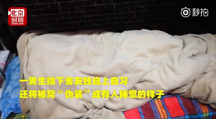 1月6日星期六,还有两周就要期末考试,郑州某高校一大二男生抛下舍友,早上7点多就独自去上自习,还将被窝“伪装”成有人睡觉的样子。舍友掀开被子才发现里面没人,他本人表示只是将被子随手一扔,但是这个理由却没有得到舍友的认可。