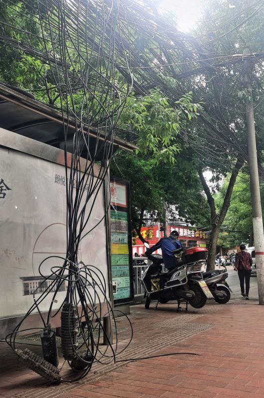 郑州一路段线缆如同“蜘蛛网” 悬在半空很危险