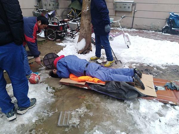 敬业!他趴在积雪和浮冰上,在冷水中工作一小时抢修阀门