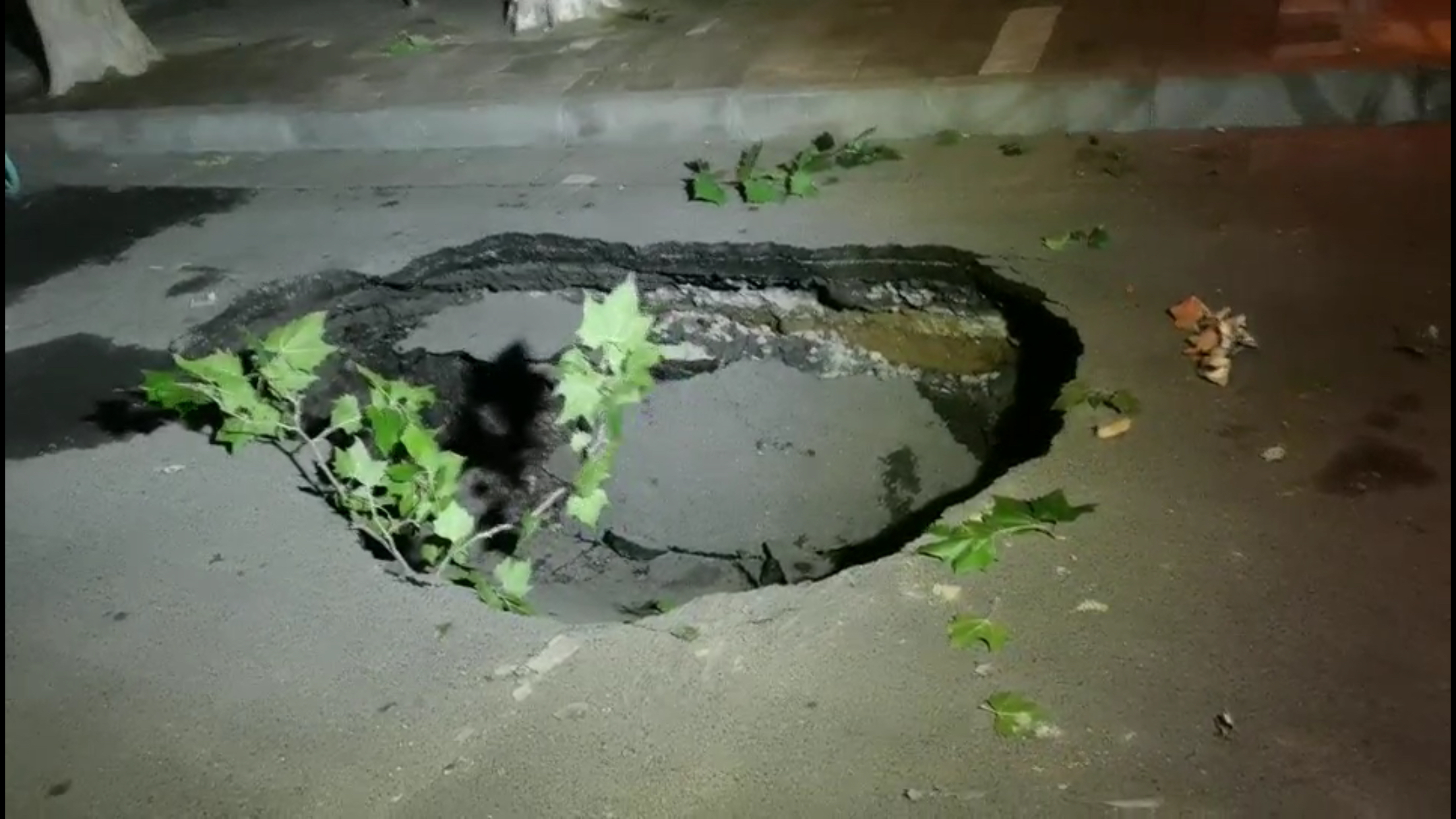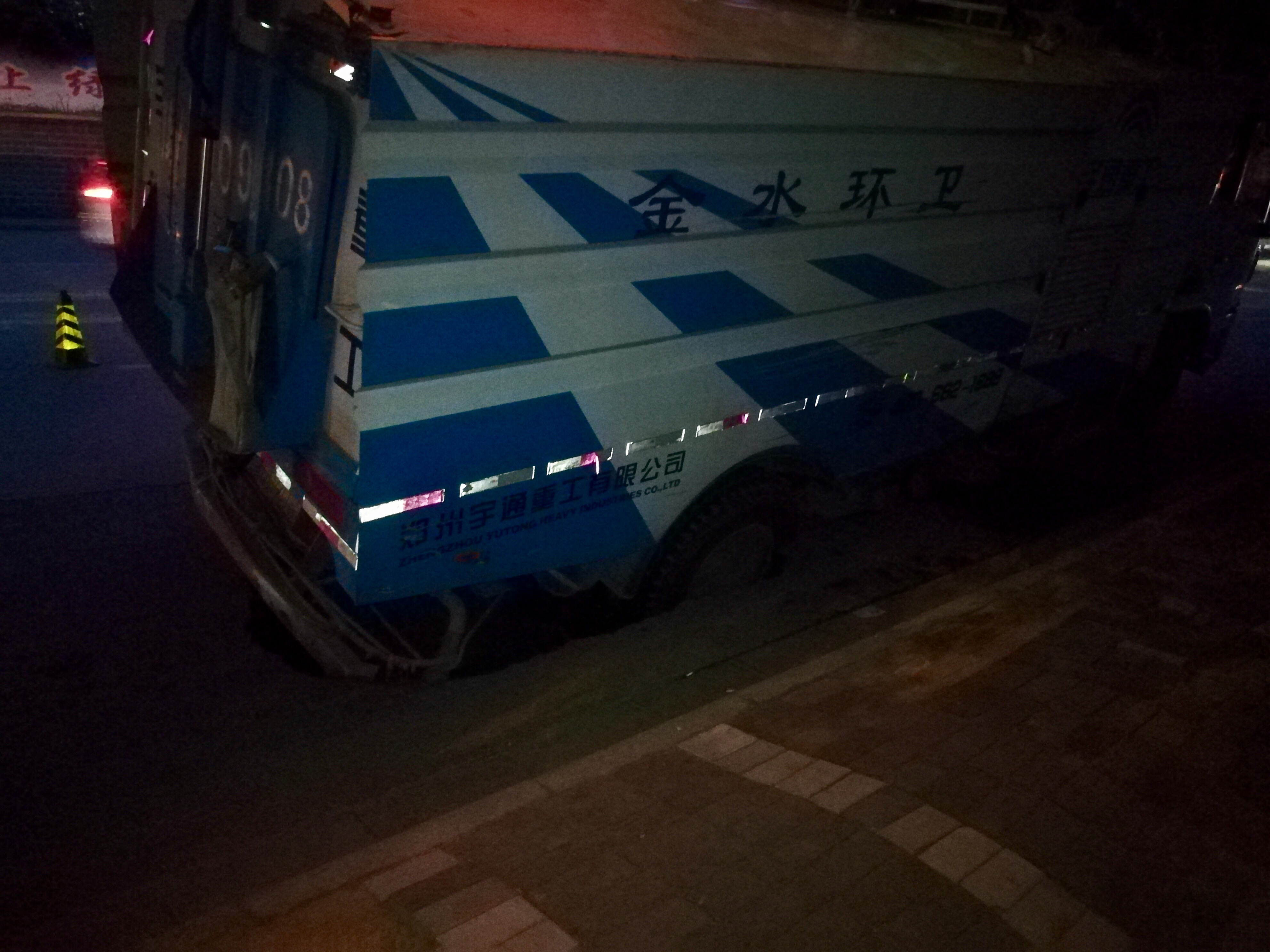 郑州东风路突发塌陷,洒水车被困6小时,维修工人连夜补平