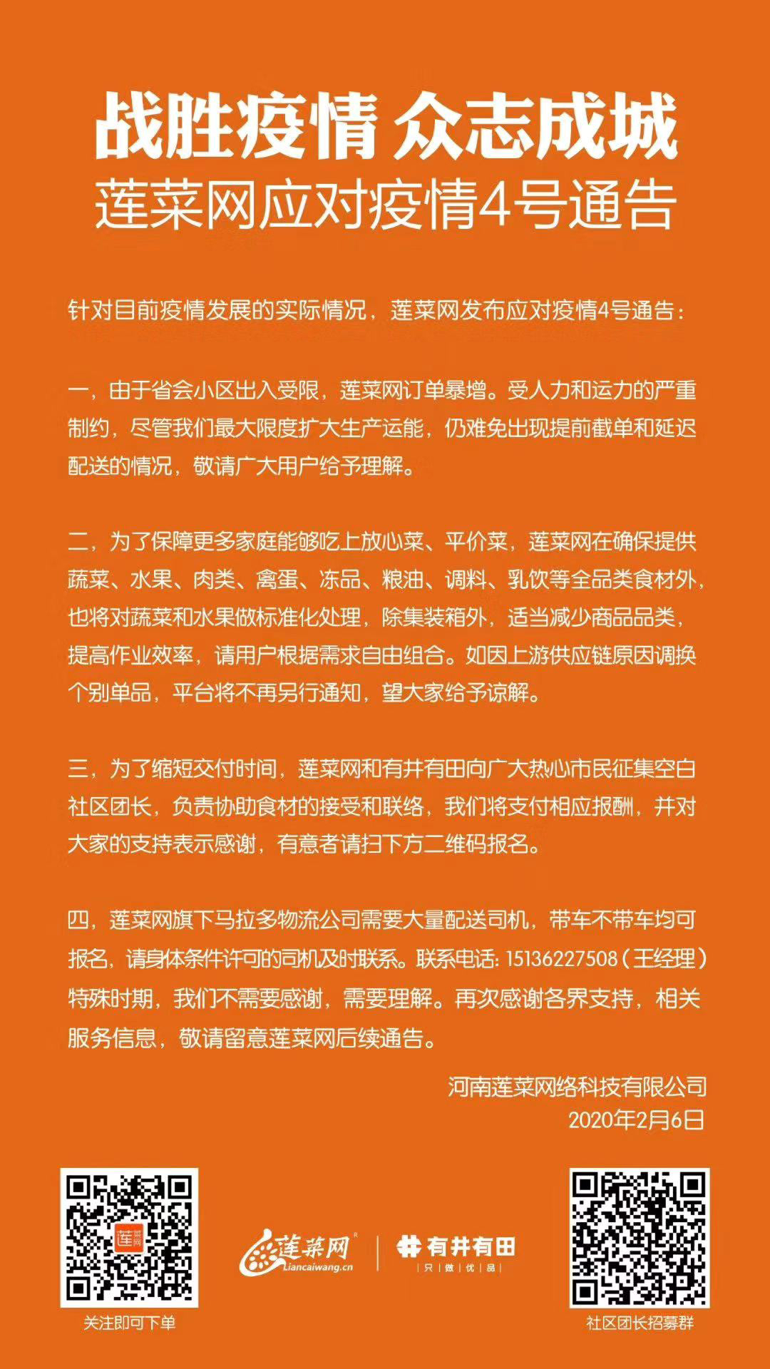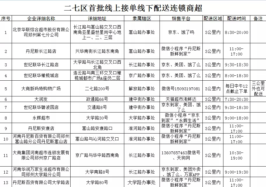 此外,大河报记者了解到,3日,二七区为了让辖区居民不出门就能买到生活必需品,上线了13家商超,线上接单,线下配送。