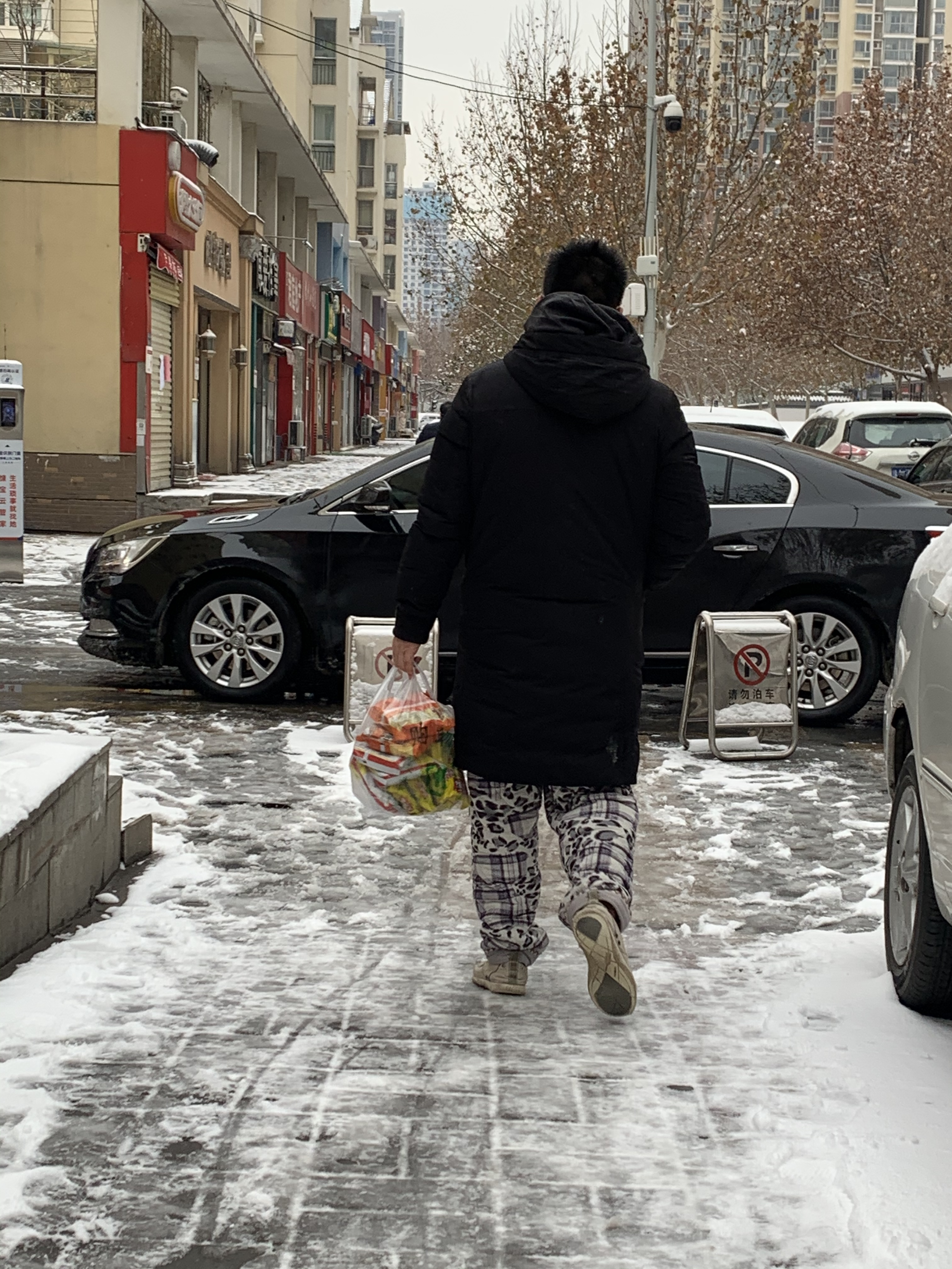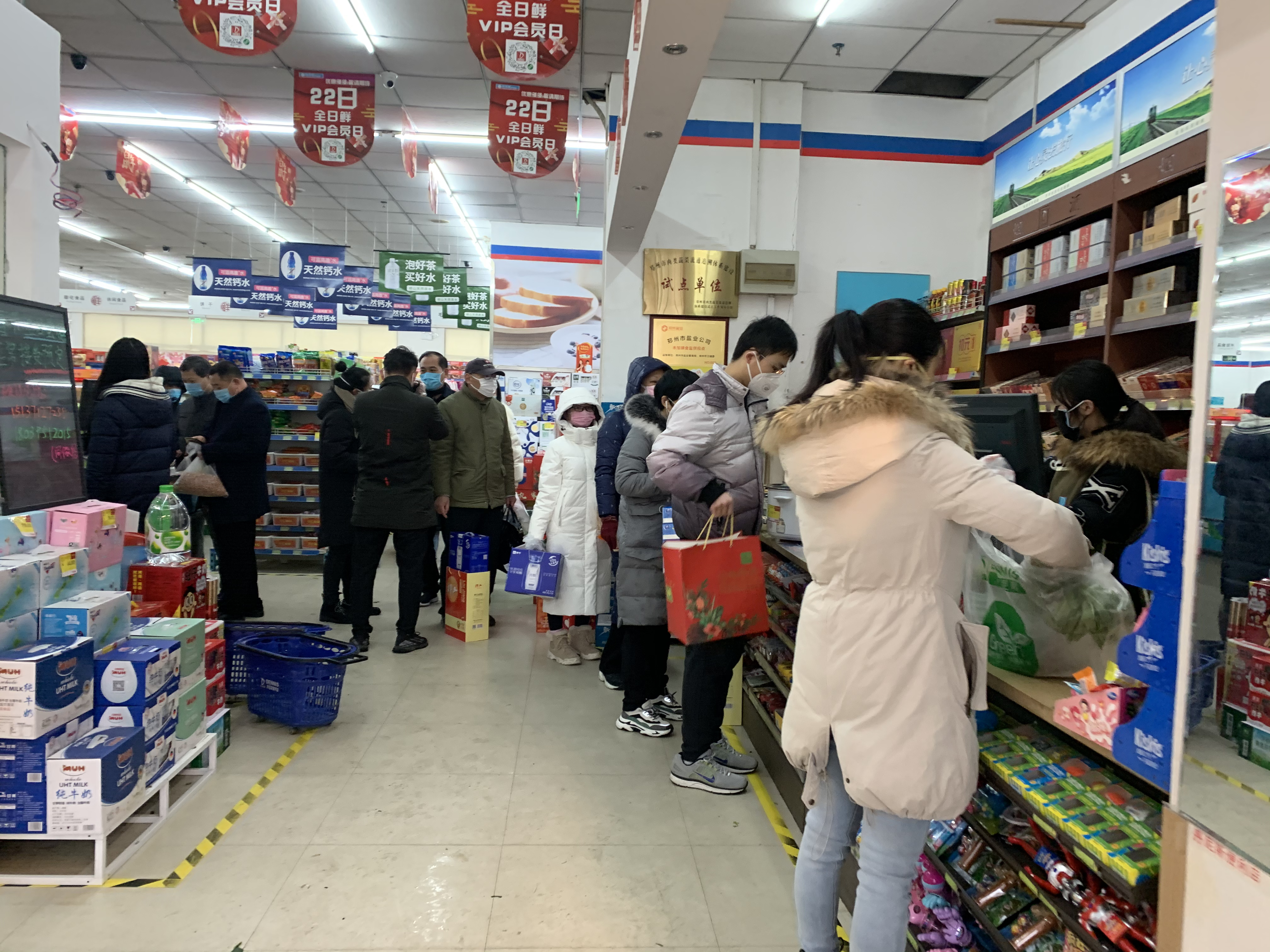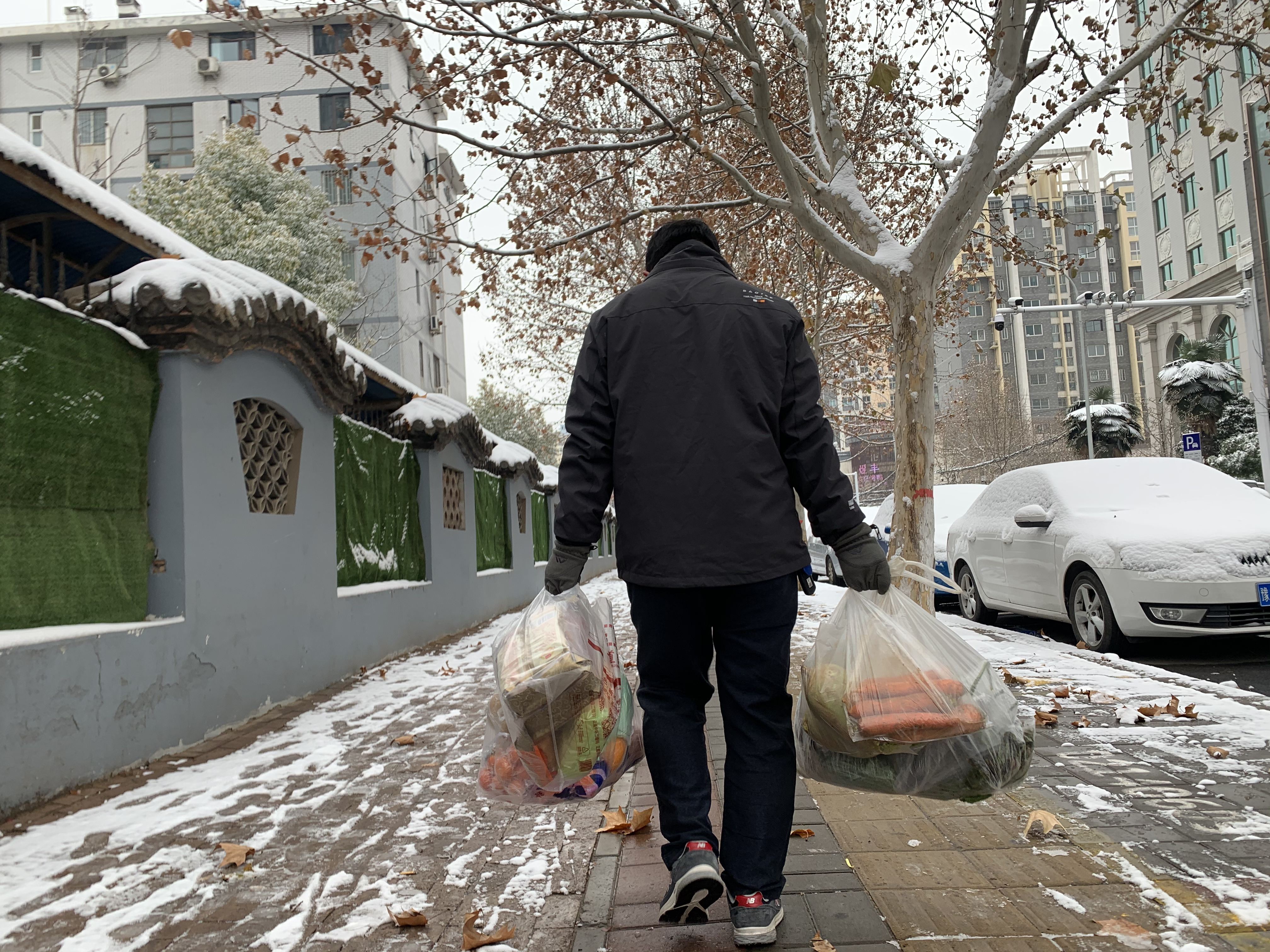 不过,到了生鲜超市附近,路上的人渐渐多了起来,大家大多都是手提蔬菜、水果等各类食品,戴着口罩,步履匆匆。