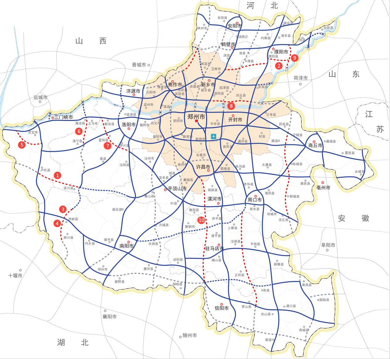9. 阳新高速濮阳段; 10. 许昌至信阳高速。