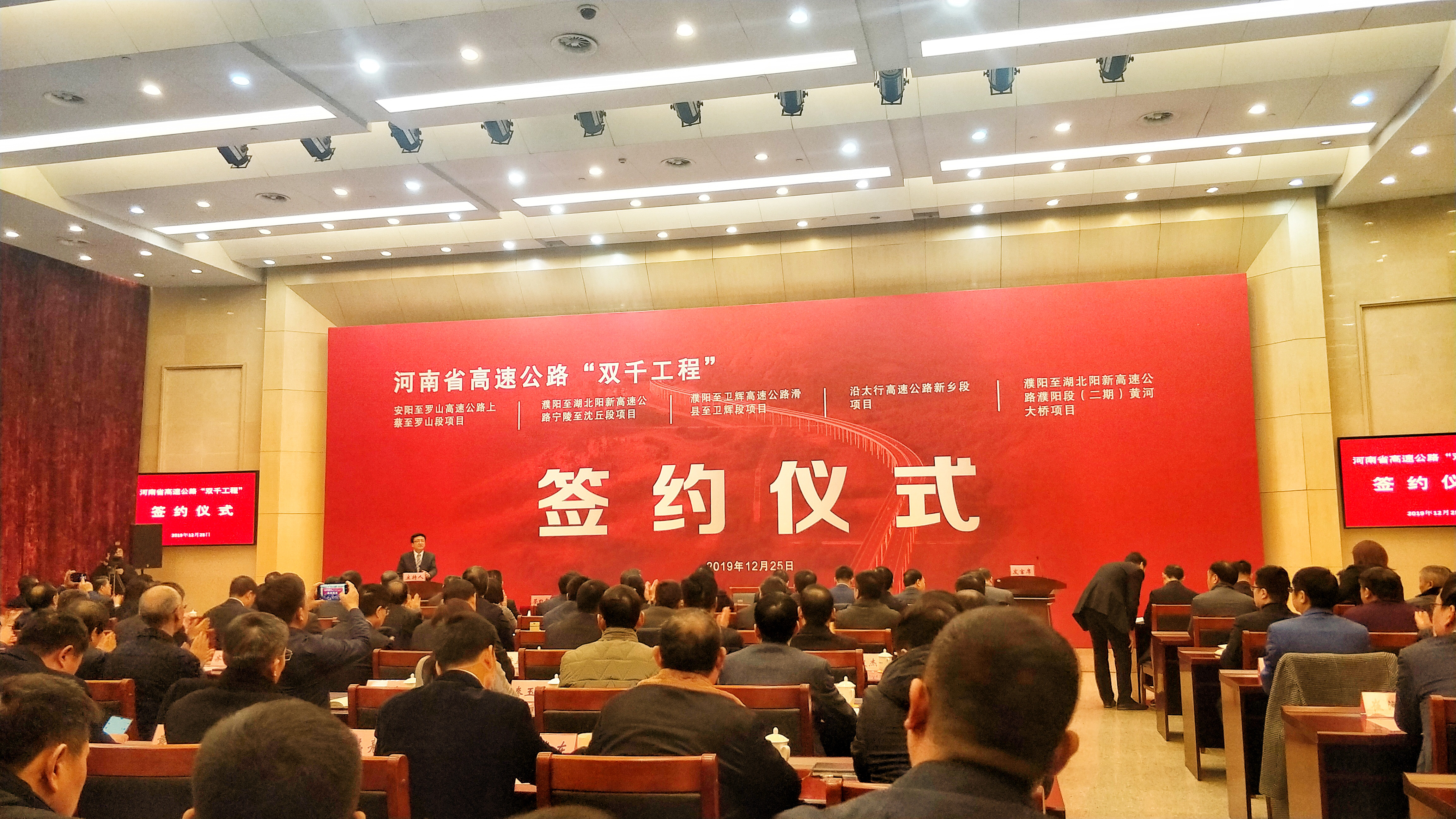 12月25日,阳新高速宁陵至沈丘段、安罗高速上蔡至罗山段、沿太行高速新乡段、阳新高速濮阳段二期黄河大桥、濮卫高速滑县至卫辉段等五个高速公路项目协议签约仪式,在省交通运输厅举行,标志着总投资超过1000亿元、总里程超过1000公里的15个高速公路“双千工程”项目,年内开工目标顺利实现。