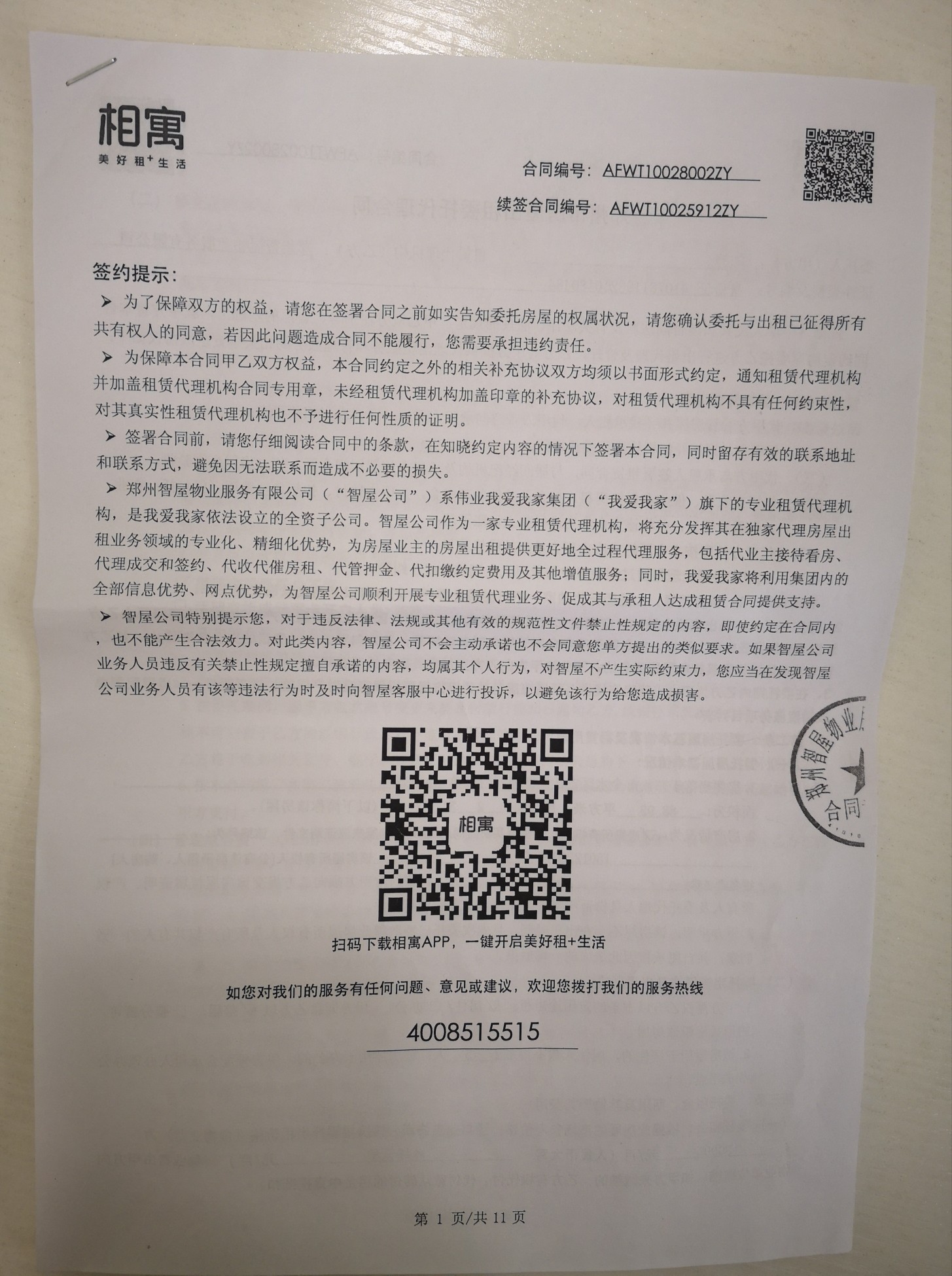陈女士给记者提供的一份郑州市房屋出租委托代理合同显示,智屋公司系伟业我爱我家集团(“我爱我家”)旗下的专业租赁代理机构,是我爱我家依法设立的全资子公司。甲方是陈女士,乙方是智屋公司。