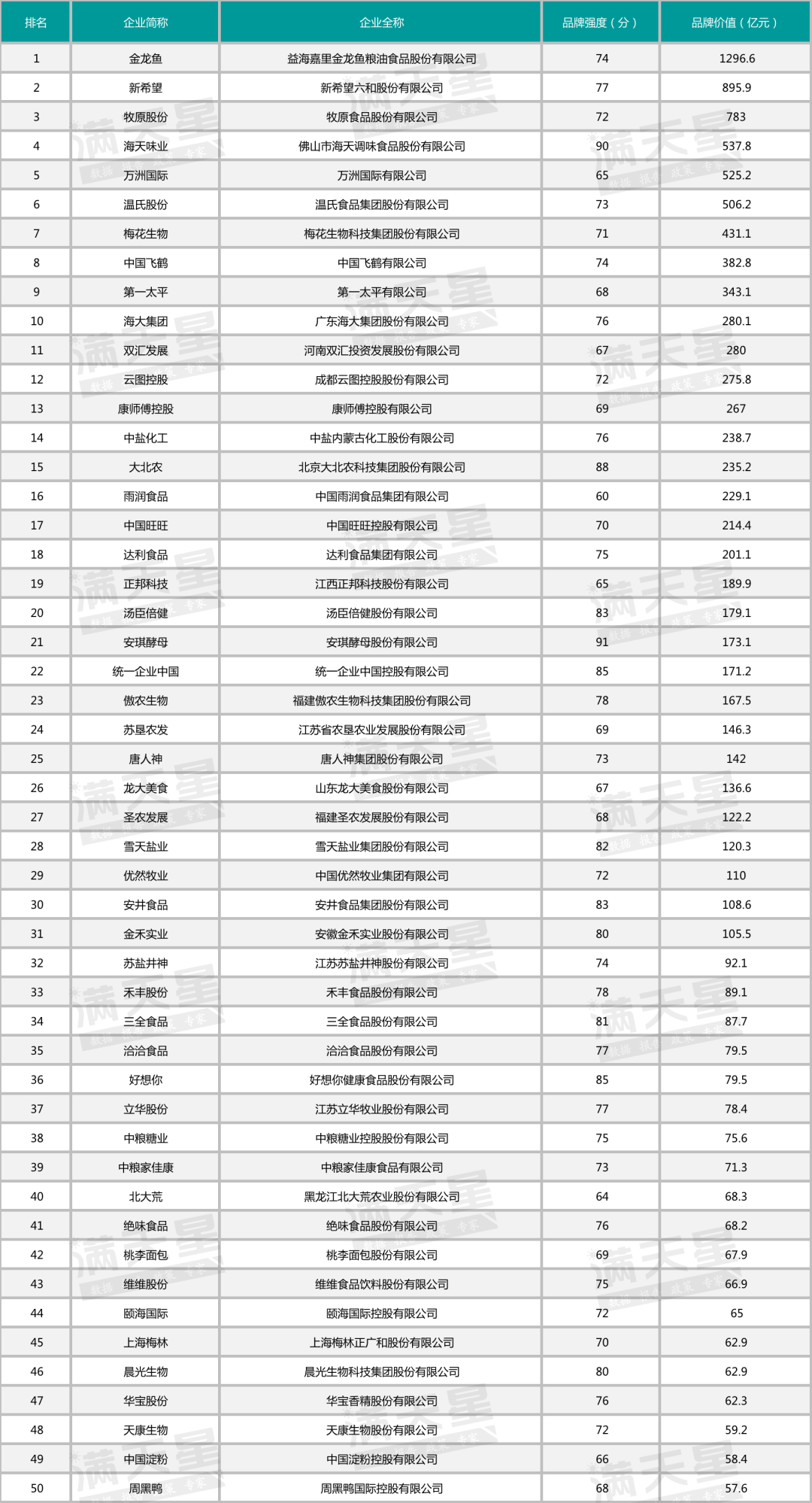 【大河财立方消息】据赛迪顾问,近日,消费日报联合赛迪顾问发布了《2023中国食品行业品牌价值50强》(以下简称“榜单”)。榜单依据《品牌价值评价 多周期超额收益法》(GB/T 29188—2022),评选出2023年消费品工业品牌价值食品行业品牌价值Top50。金龙鱼、新希望和牧原股份位列前三。