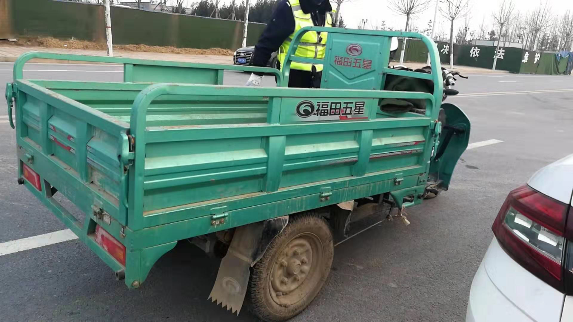 1月14日下午4时许,郑州市中牟县交警大队七中队民警在辖区进行正常的执勤巡逻时,发现一辆未悬挂机动车号牌的电三轮车沿广惠街由南向北疾驶而来,此路段系管控区域,民警迅速将该车拦停。