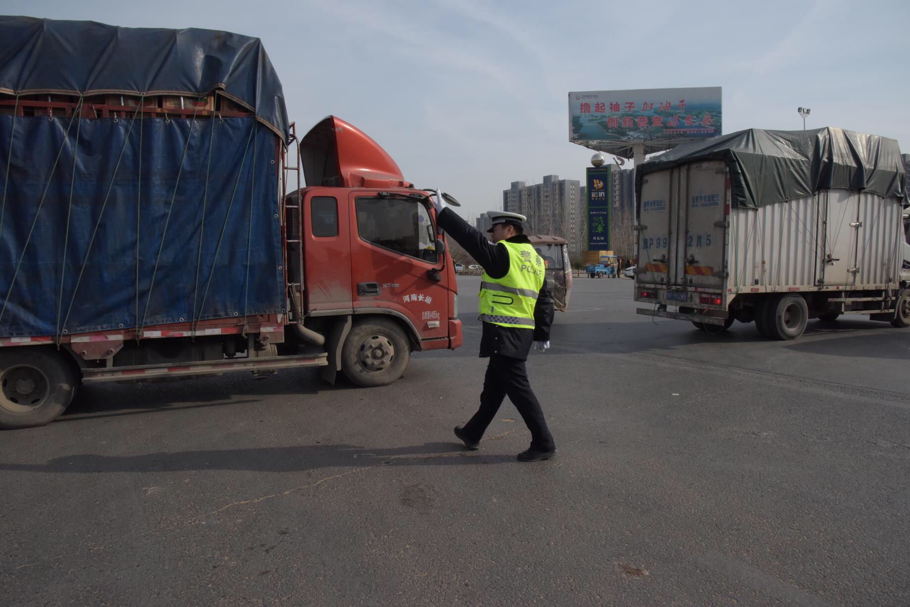 据负责万邦周边交通秩序的中牟县交警大队九中队中队长雍海峰介绍:从1月16日(农历腊月20)开始,万邦市场就迎来了车流高峰,车流量是平时的4-5倍,道路承受能力饱和、过饱和,道路出现拥堵。为缓解道路拥堵,中牟交警抽调30多名警力进行疏导,但由于车辆实在太多、太集中,虽然中牟交警全力以赴,仍出现高峰时段小范围的交通拥堵。