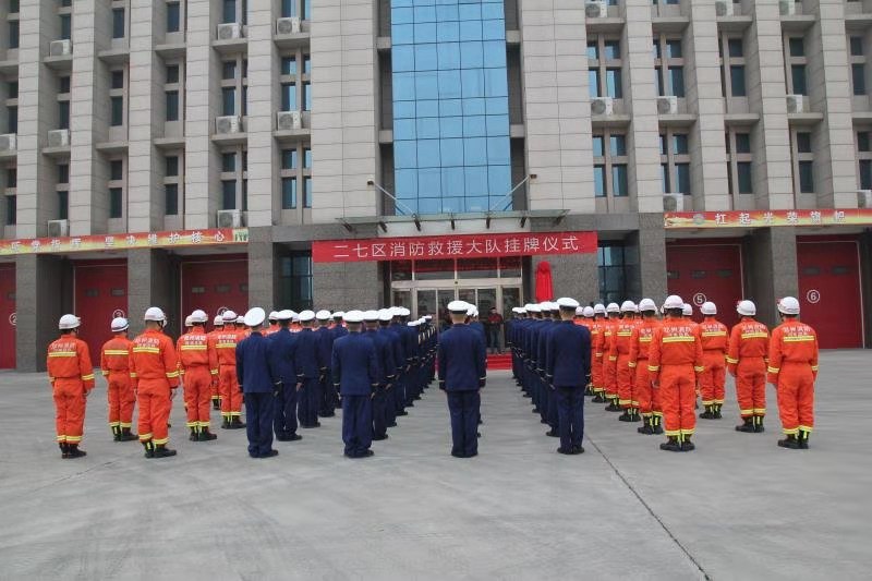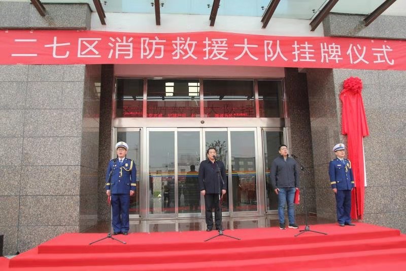 1月3日上午,郑州市二七区消防救援大队在办公楼前举行了隆重的挂牌仪式。