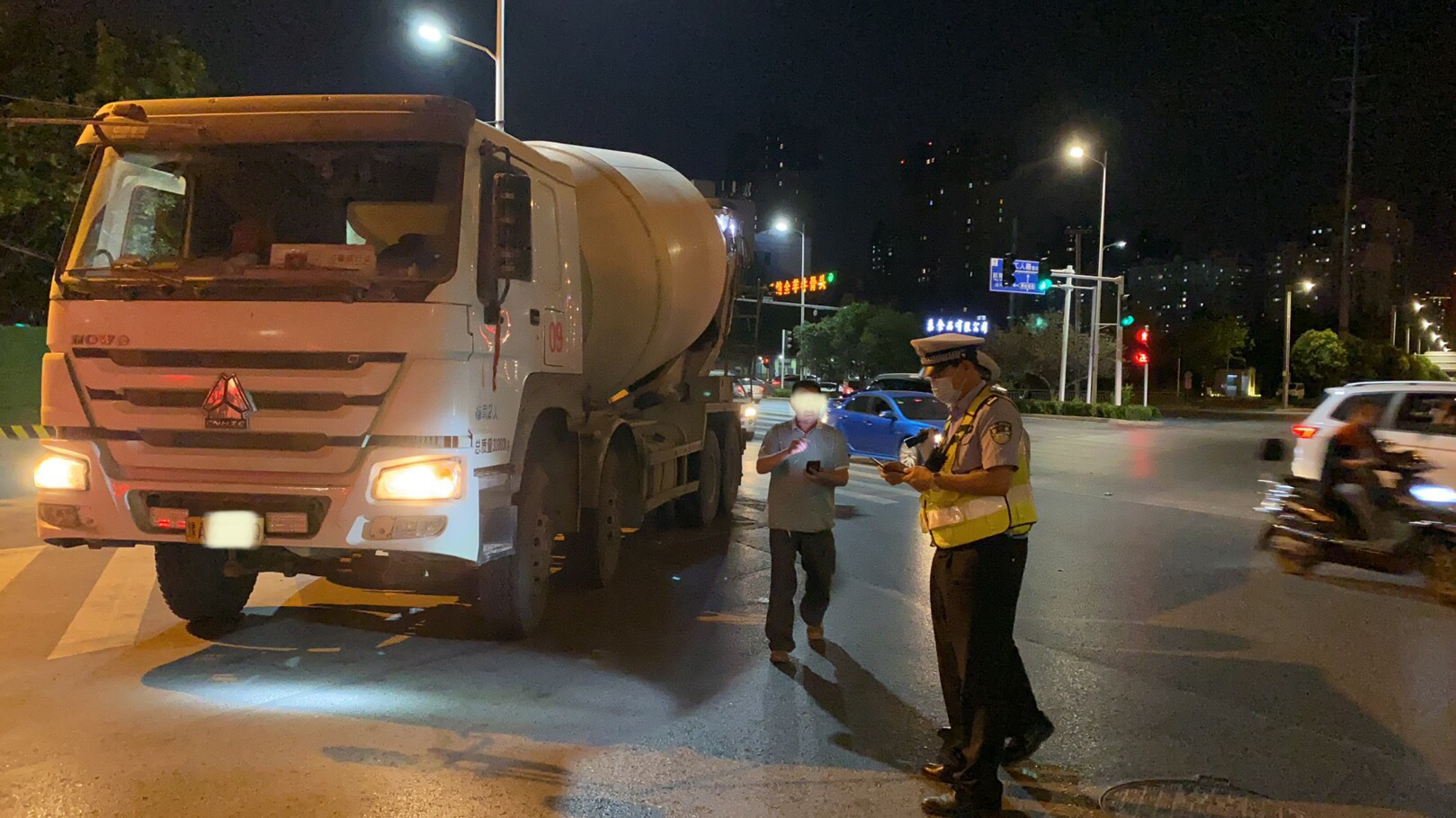 晚9时44分,交警二大队保通中队民警王永健、程习征,在莲花街和常椿路交叉口执行夜间违法集中整治行动时,一辆豫AZ2898和一辆豫AW5216的水泥罐车,沿BRT公交专用道自西向东驶来。民警立即将两辆水泥罐车拦在路边,以不按规定车道行驶对两名驾驶员分别处于50元罚款的处罚。