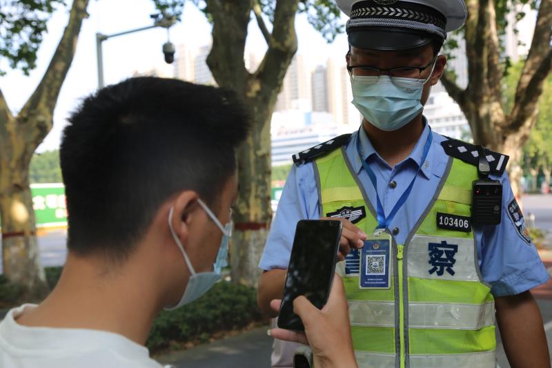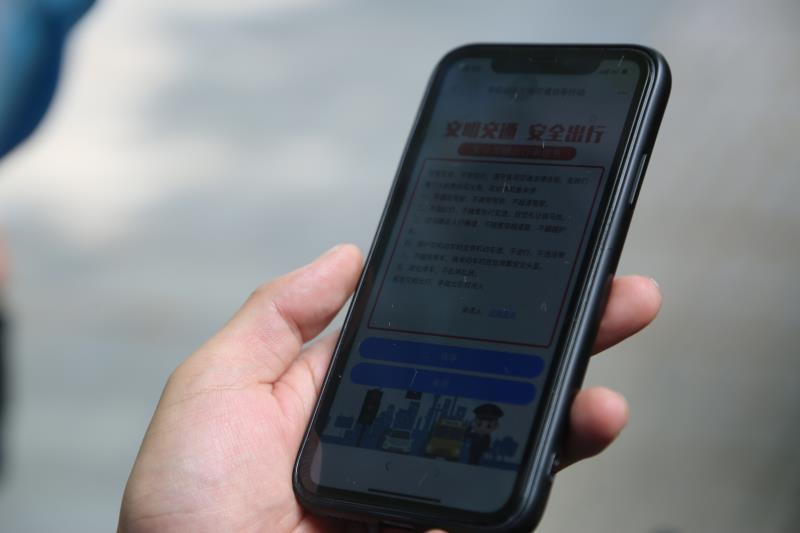 交警在查处电动车和非机动车交通违法时,会让违法人用微信扫执勤胸卡背面的二维码,填写录入交通违法信息,根据违法次数,对违法人采取签承诺书、观看交通事故警示视频、发朋友圈、参与文明交通执勤、接受处罚等不同的教育措施。