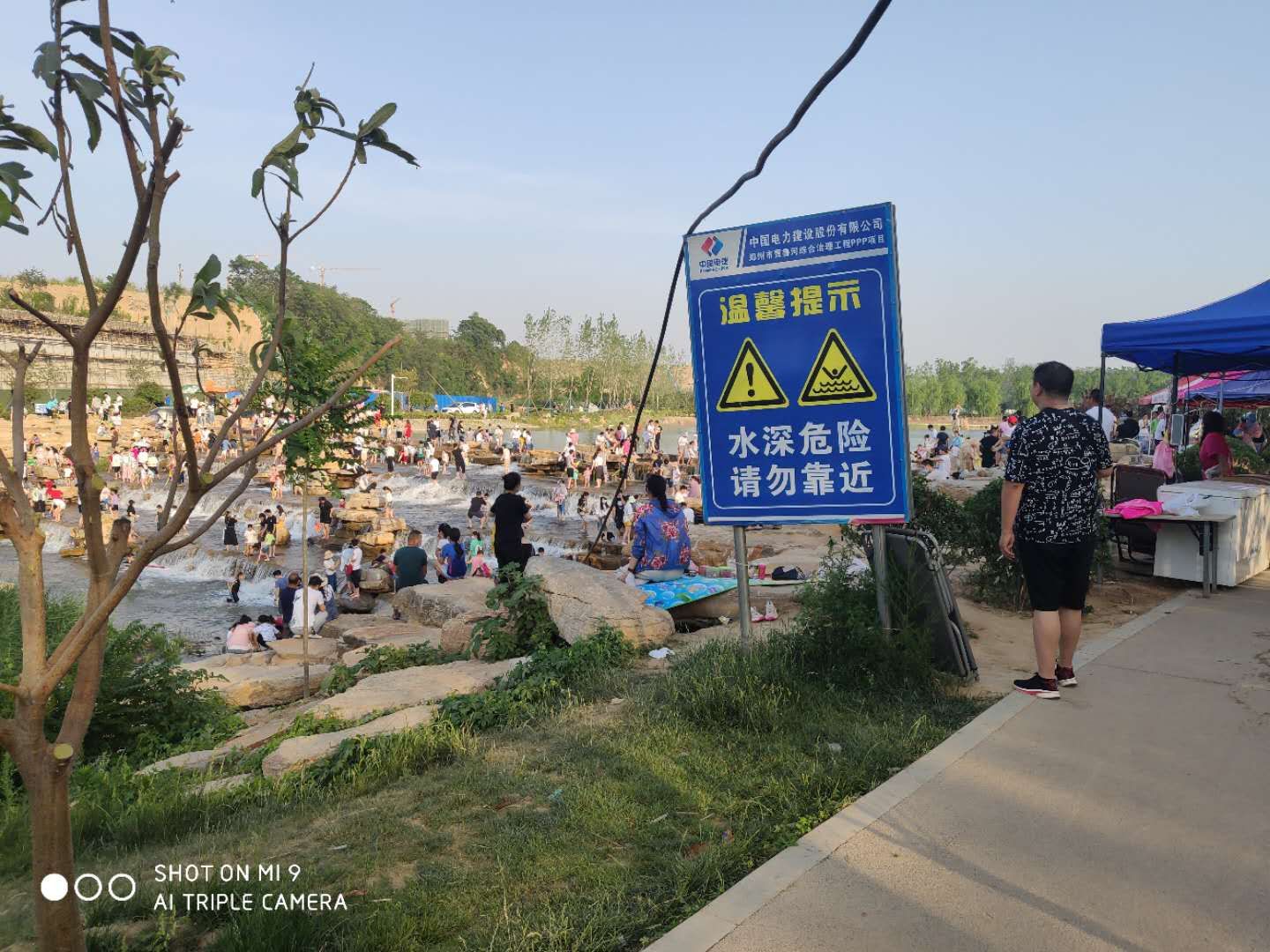 5月23日,是进入农历闰四月的第一天,郑州的气温飙升至35℃左右。闷热的环境里,不少人希望“哪儿凉快去哪儿”,找一处清凉地方,纳凉降温——在陇海西路贾鲁河景观改造区域,河道里注水后,吸引了数百人纳凉、滑草,然而个中的险象,令人担忧。