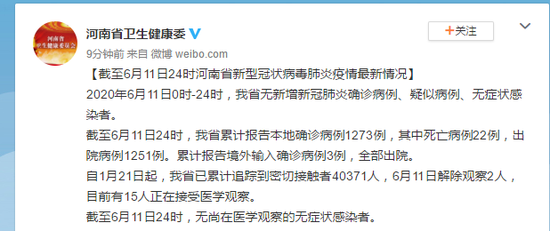 【最新通报】6月11日河南省无新增新冠肺炎确诊病例、疑似病例